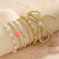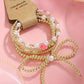 Gold Bow Knot Pearl Decor Beaded Plated Layered Bracelet