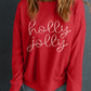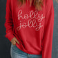 Red Christmas holly jolly Ceramic Rhinestone Letter Graphic Sweatshirt