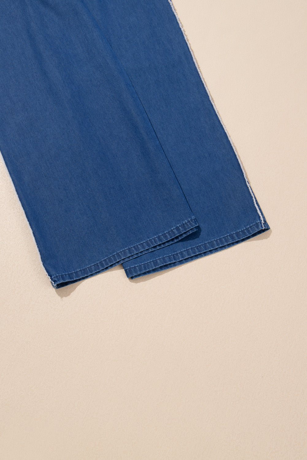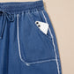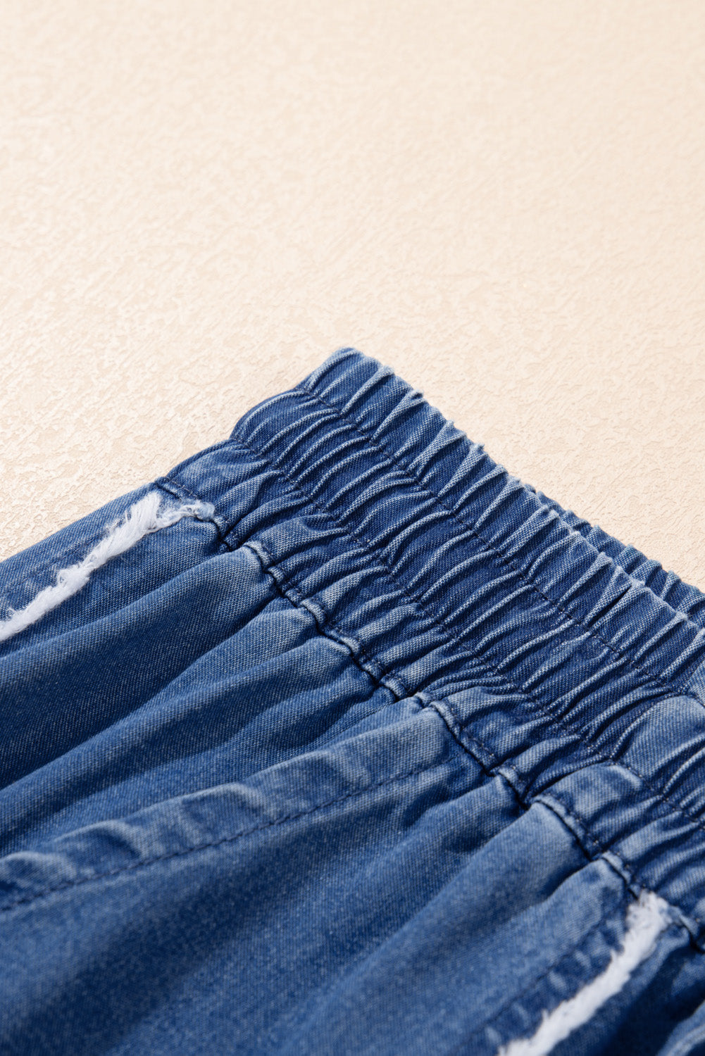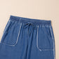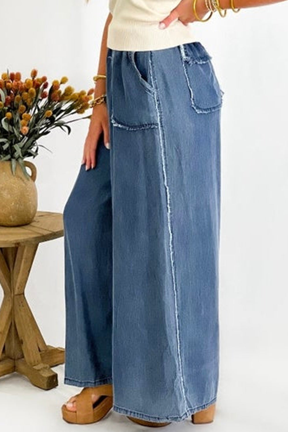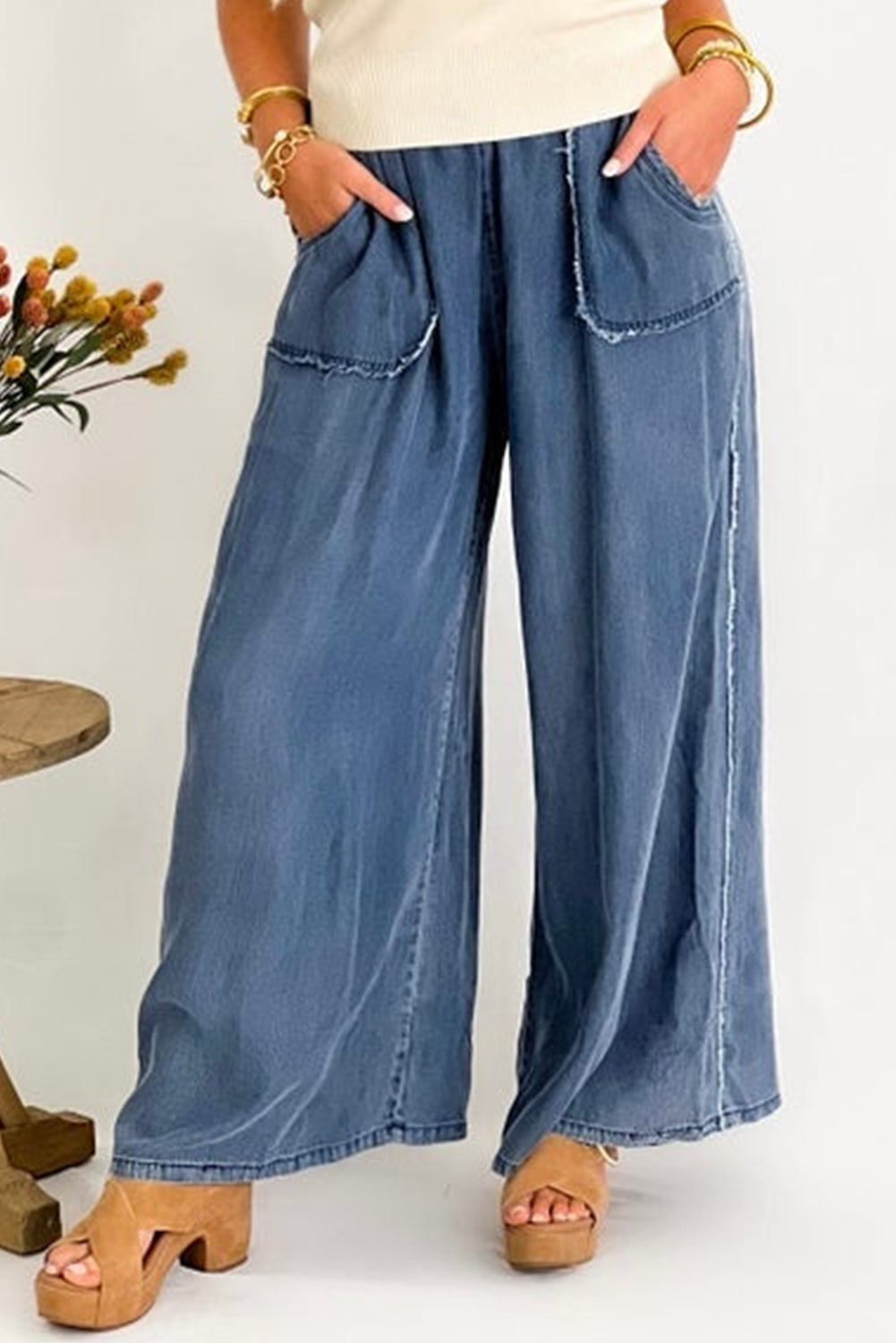 Sail Blue Washed Denim Chambray Loose Plus Size Pants