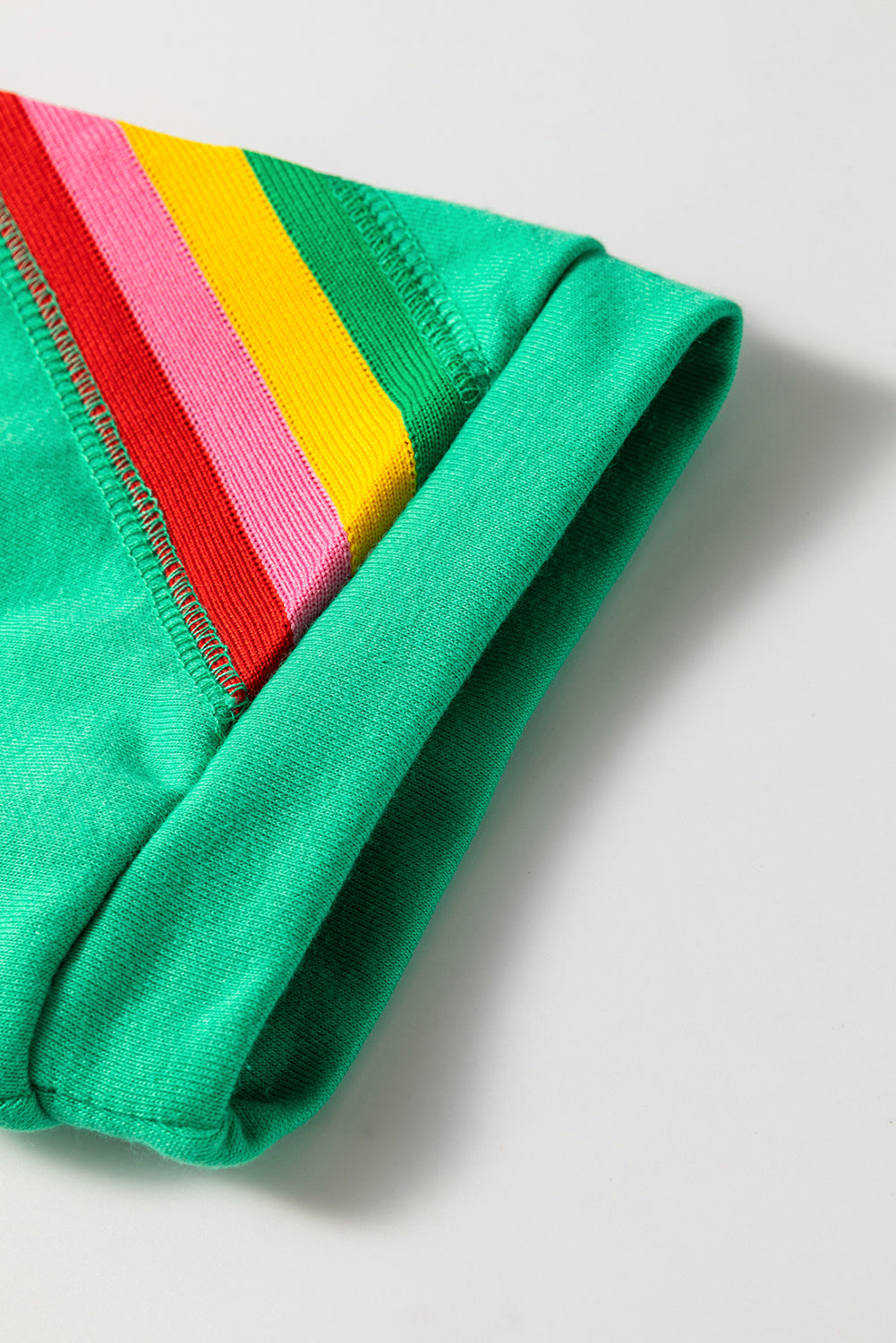 Sea Green Rainbow Colorblock Collared Short Sleeve Top 2 Piece Shorts Set