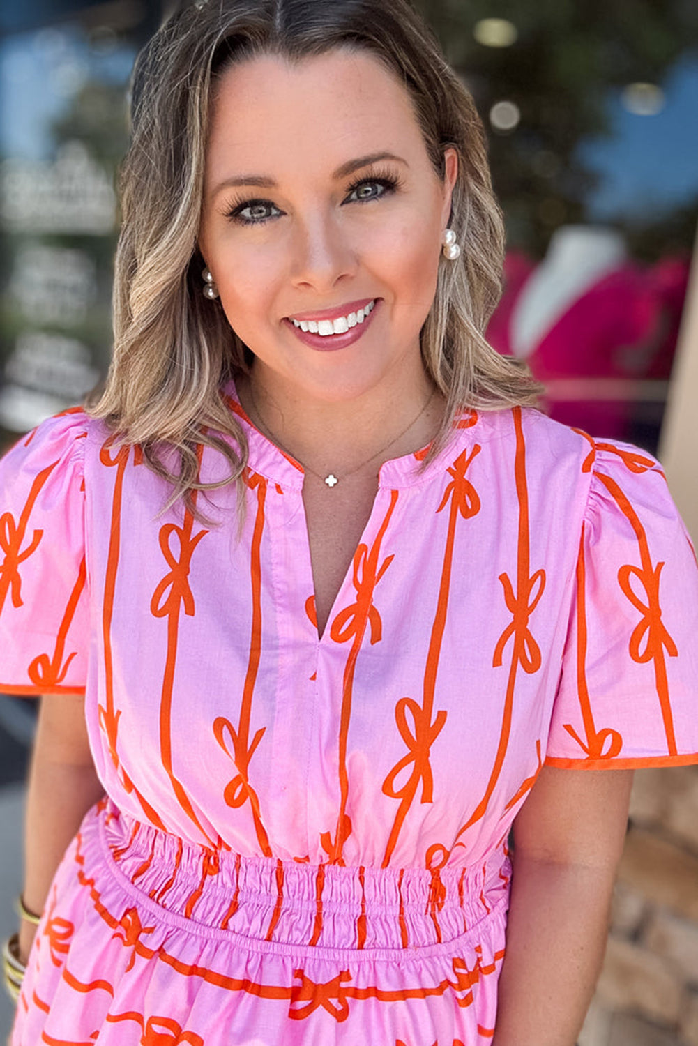 Rose Bow Tastic Clinched Waist Ruffled Plus Size Dress