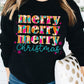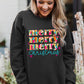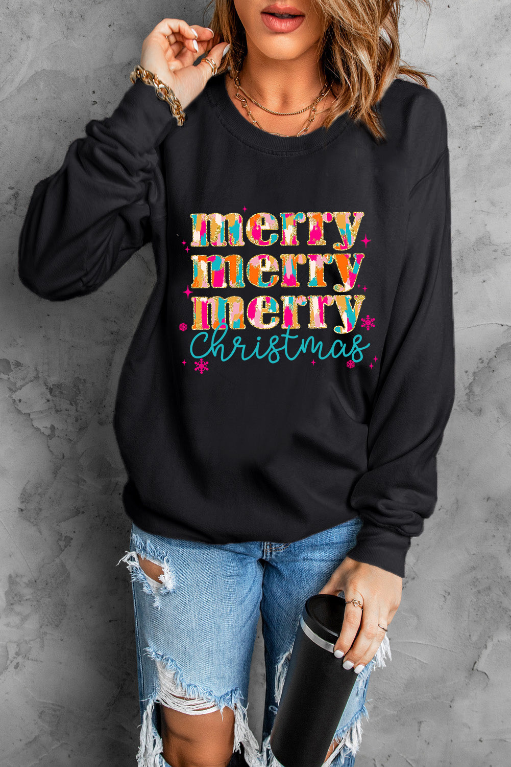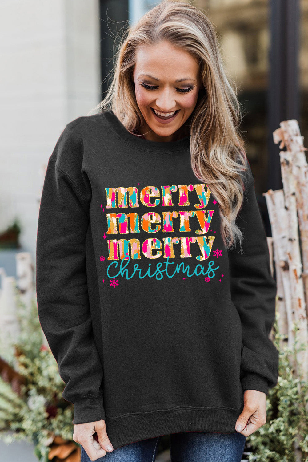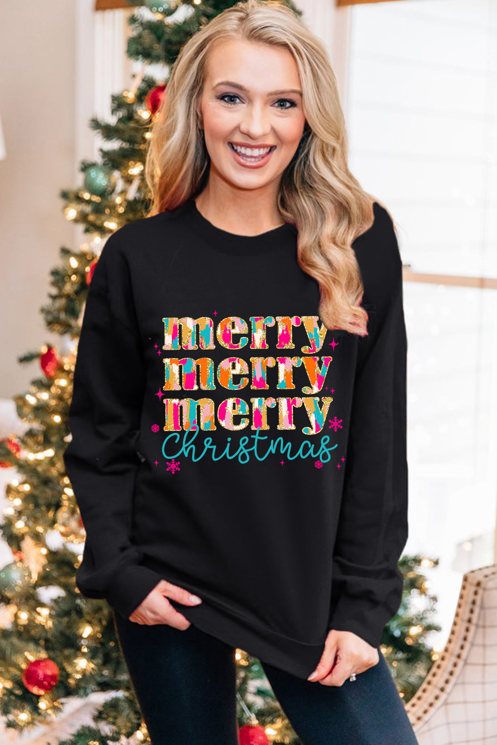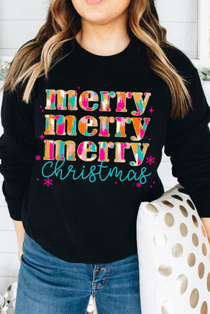 Black Merry Christmas Painted Crew Neck Graphic Sweatshirt