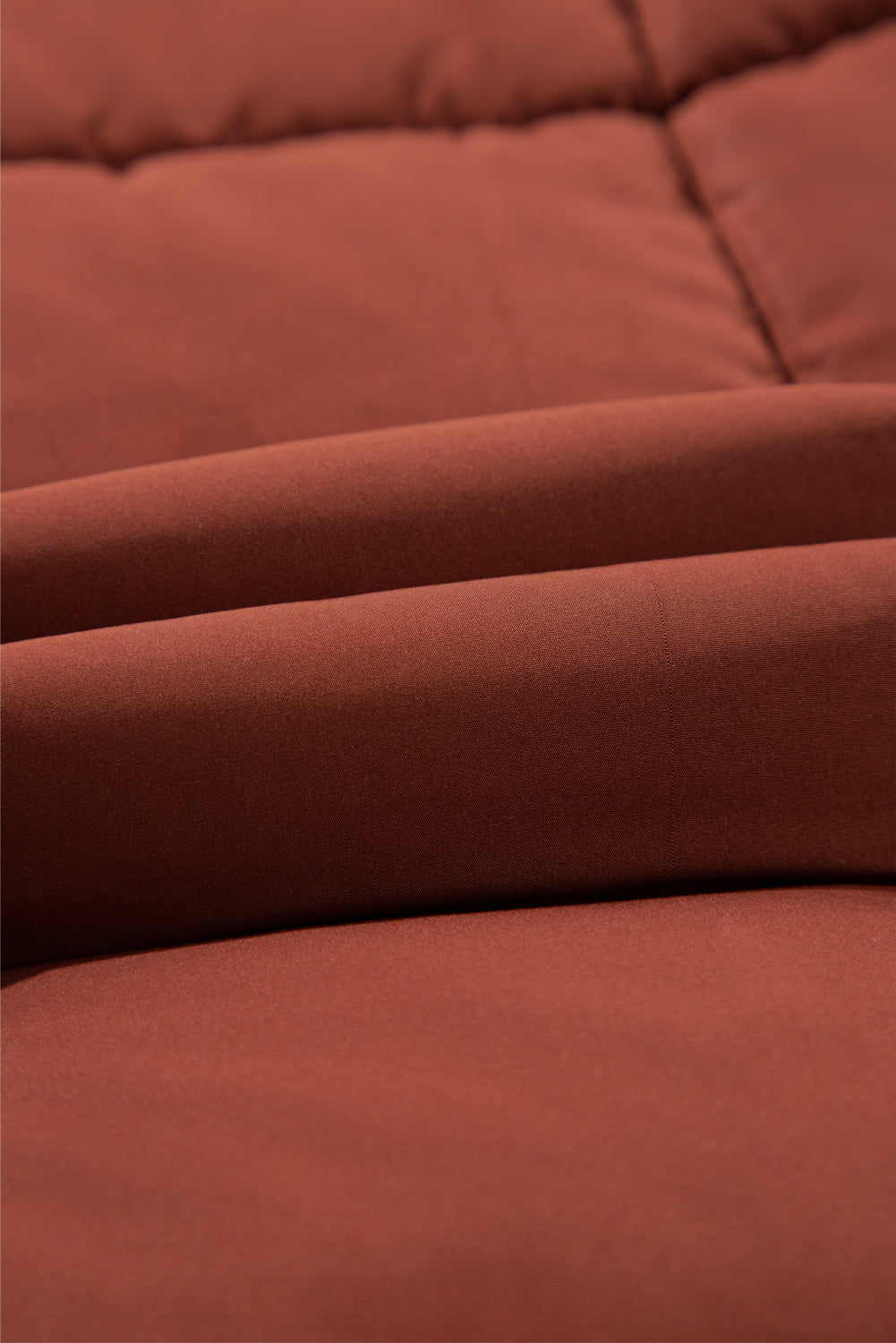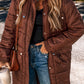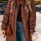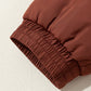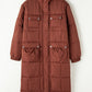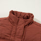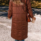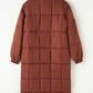 Coffee Quilted Puffer Stand Neck Zipped Mid-length Coat