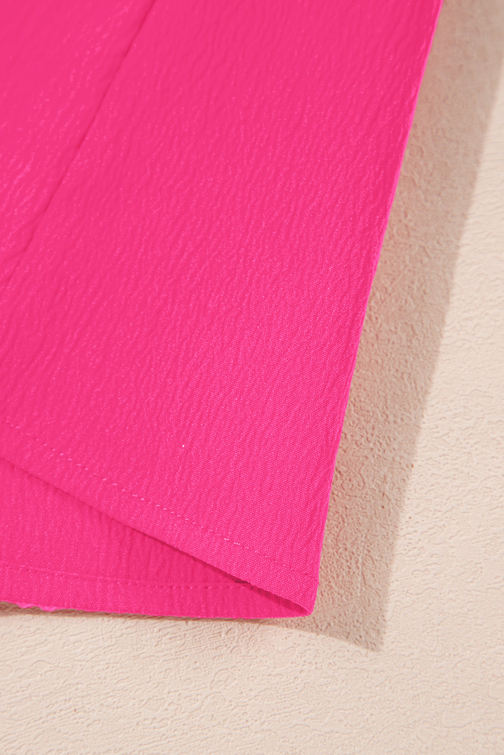 Sachet Pink Floral Embroidered Flutter Sleeve Pleated Neck Blouse