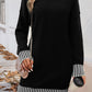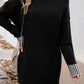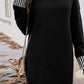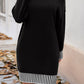 Black Striped Trim Mock Neck Dropped Long Sleeve Sweater Mini Dress