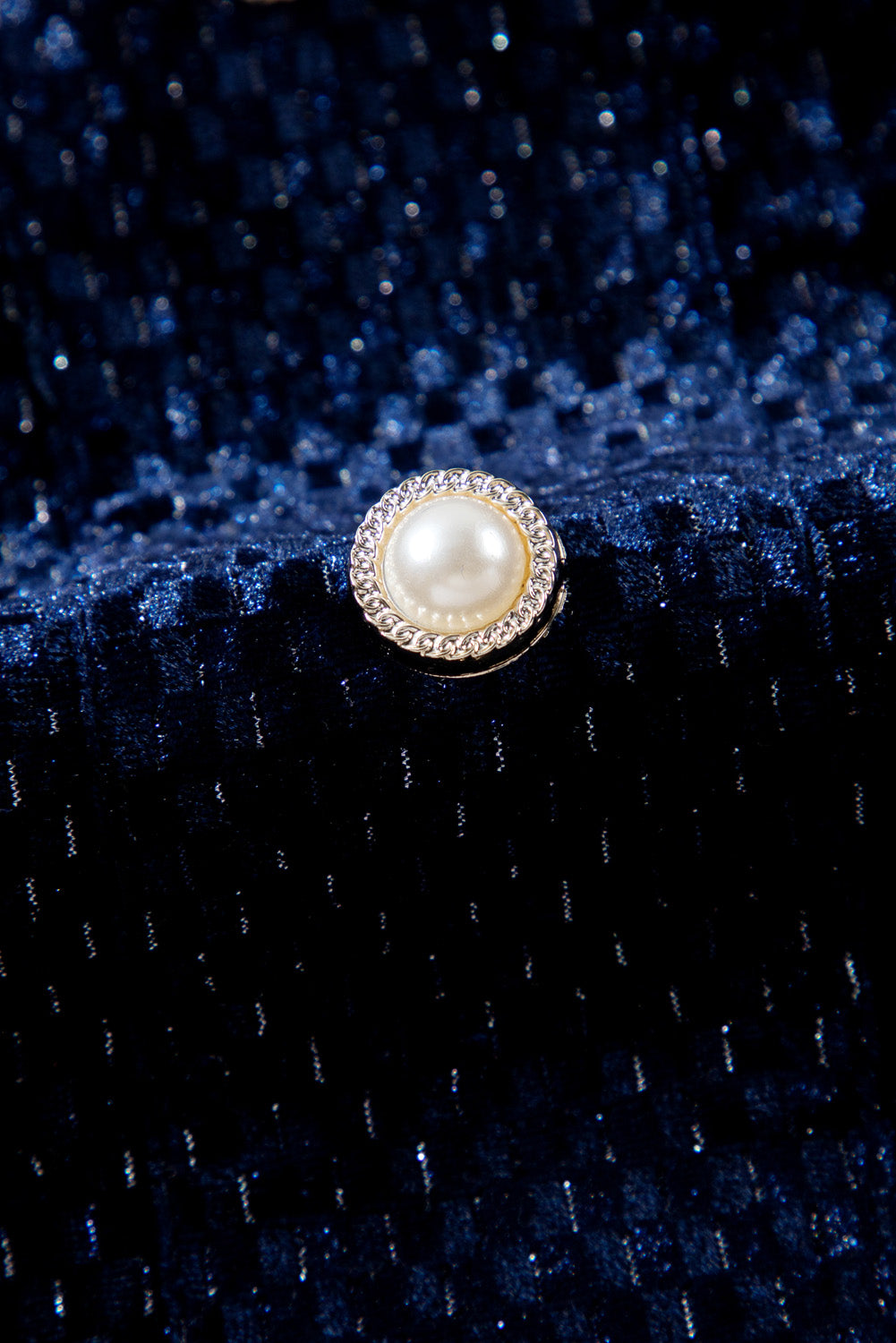 Navy Blue Plus Size Textured Velvet Tiered Button V Neck Dress