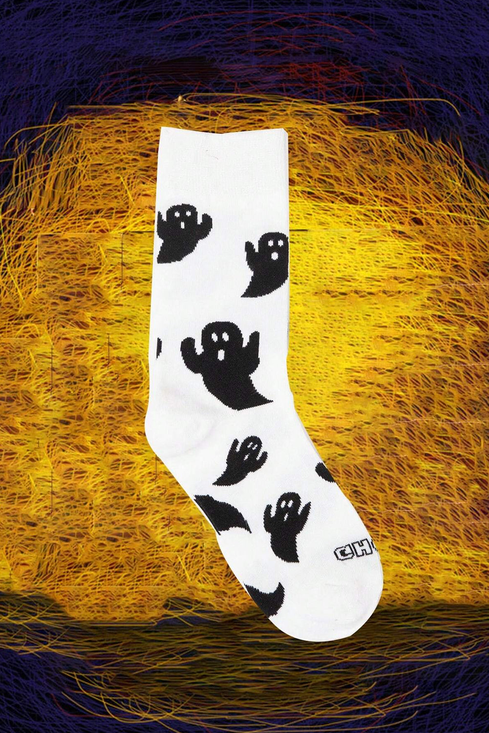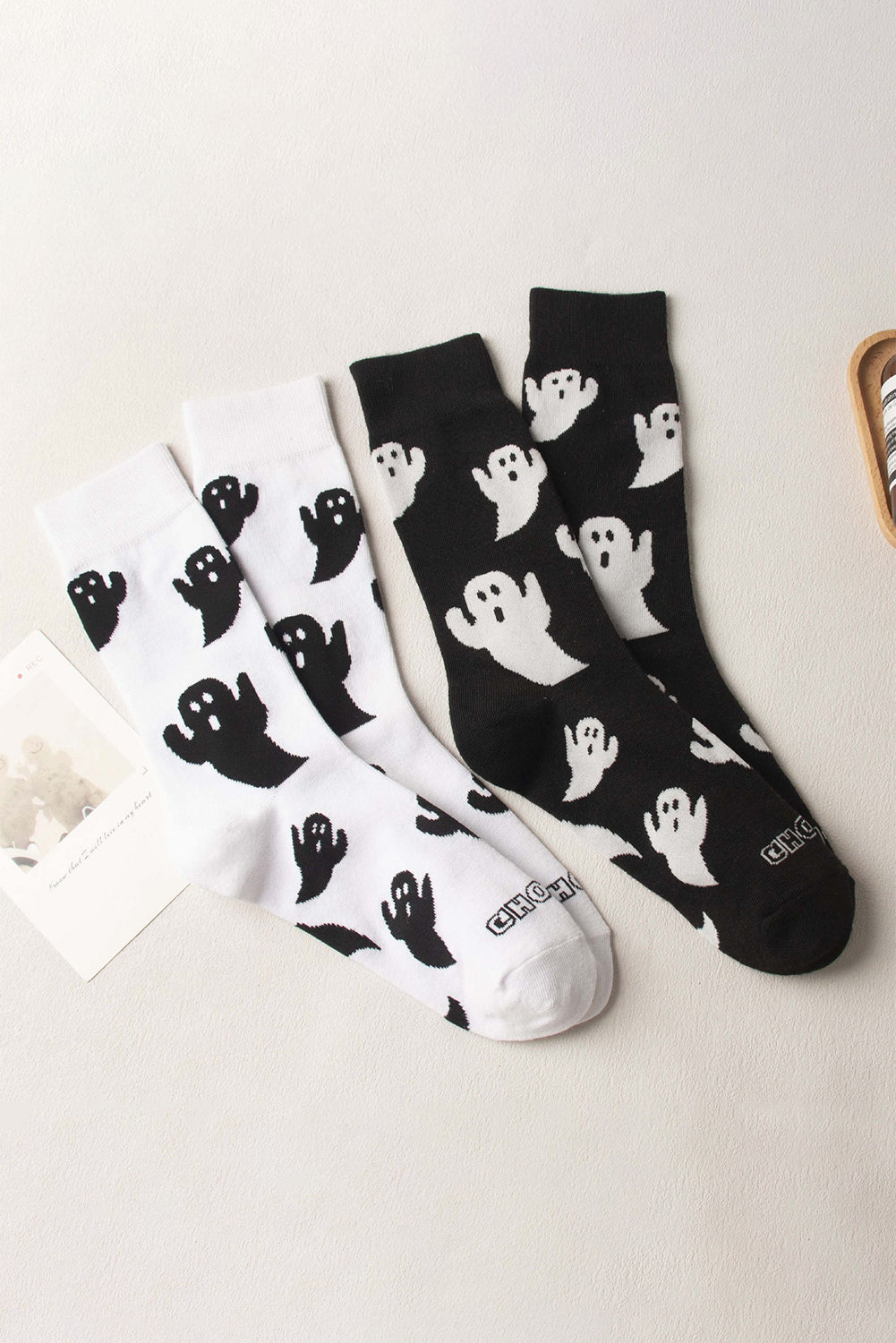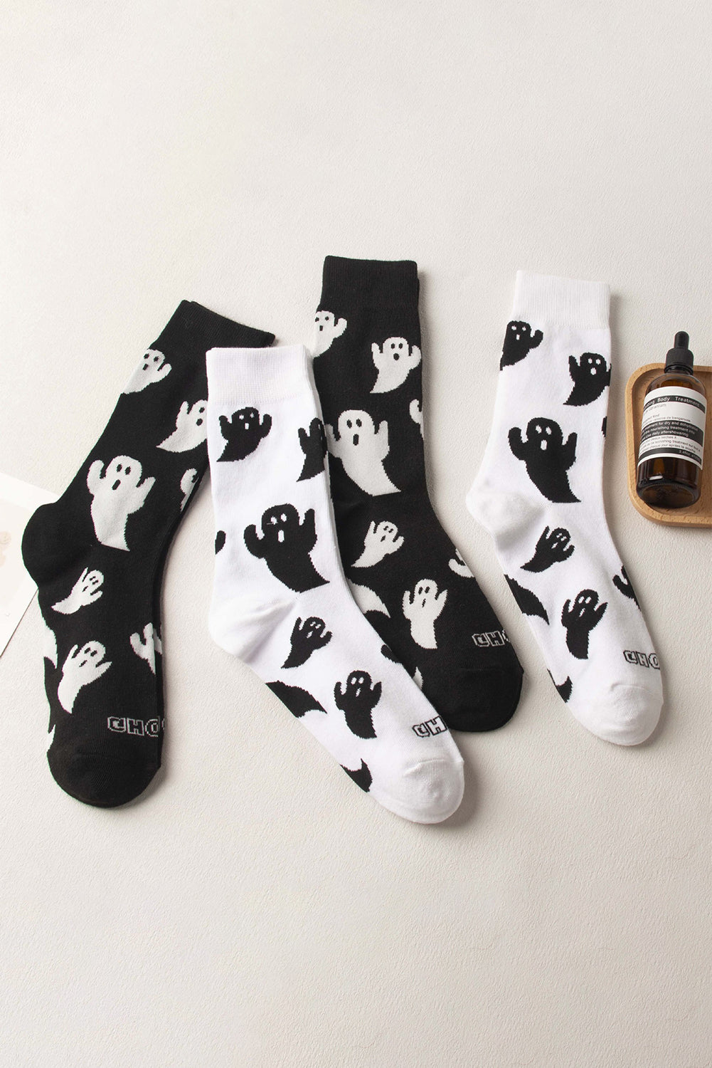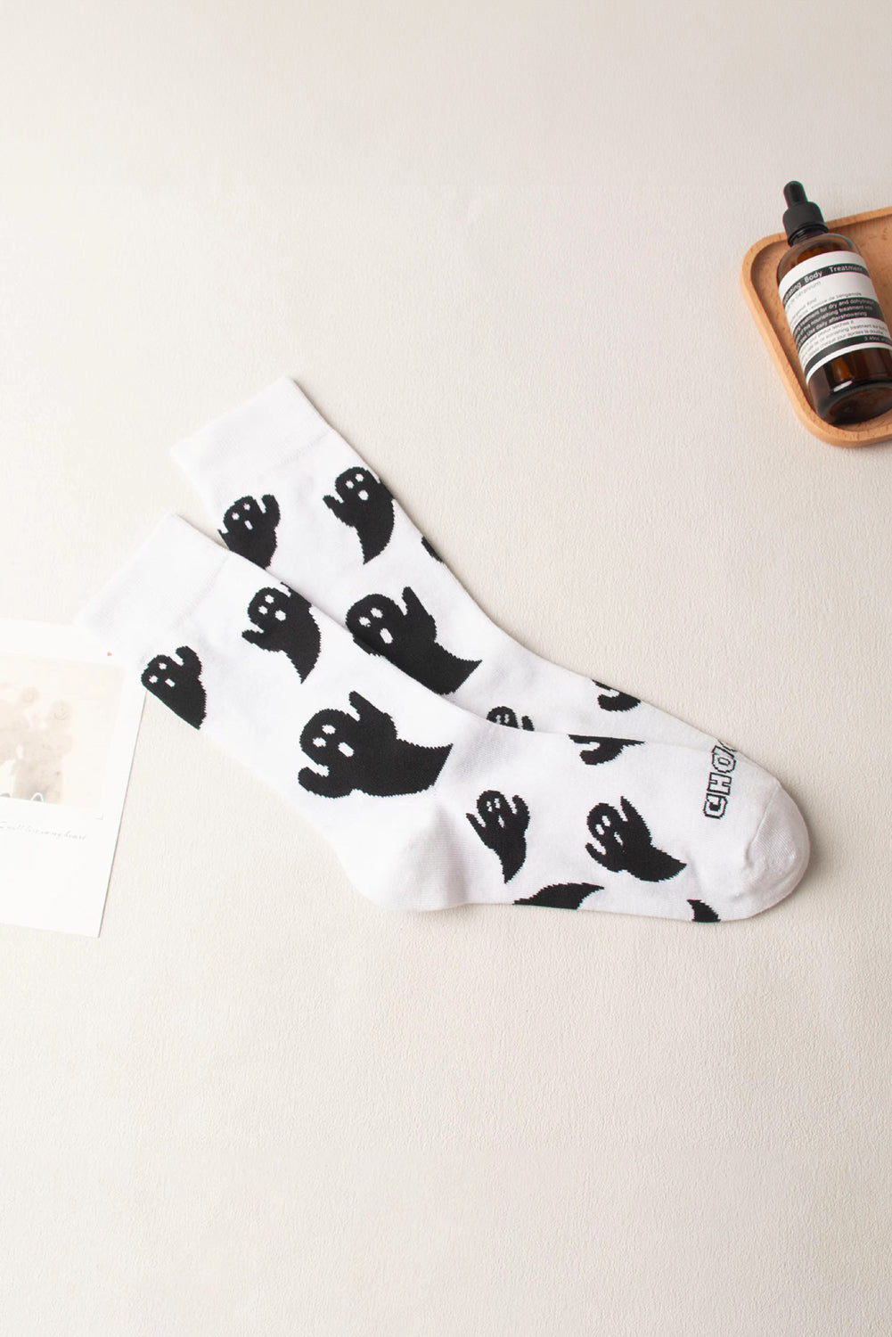 White Ghost Printed Halloween Cotton Mid calf Socks