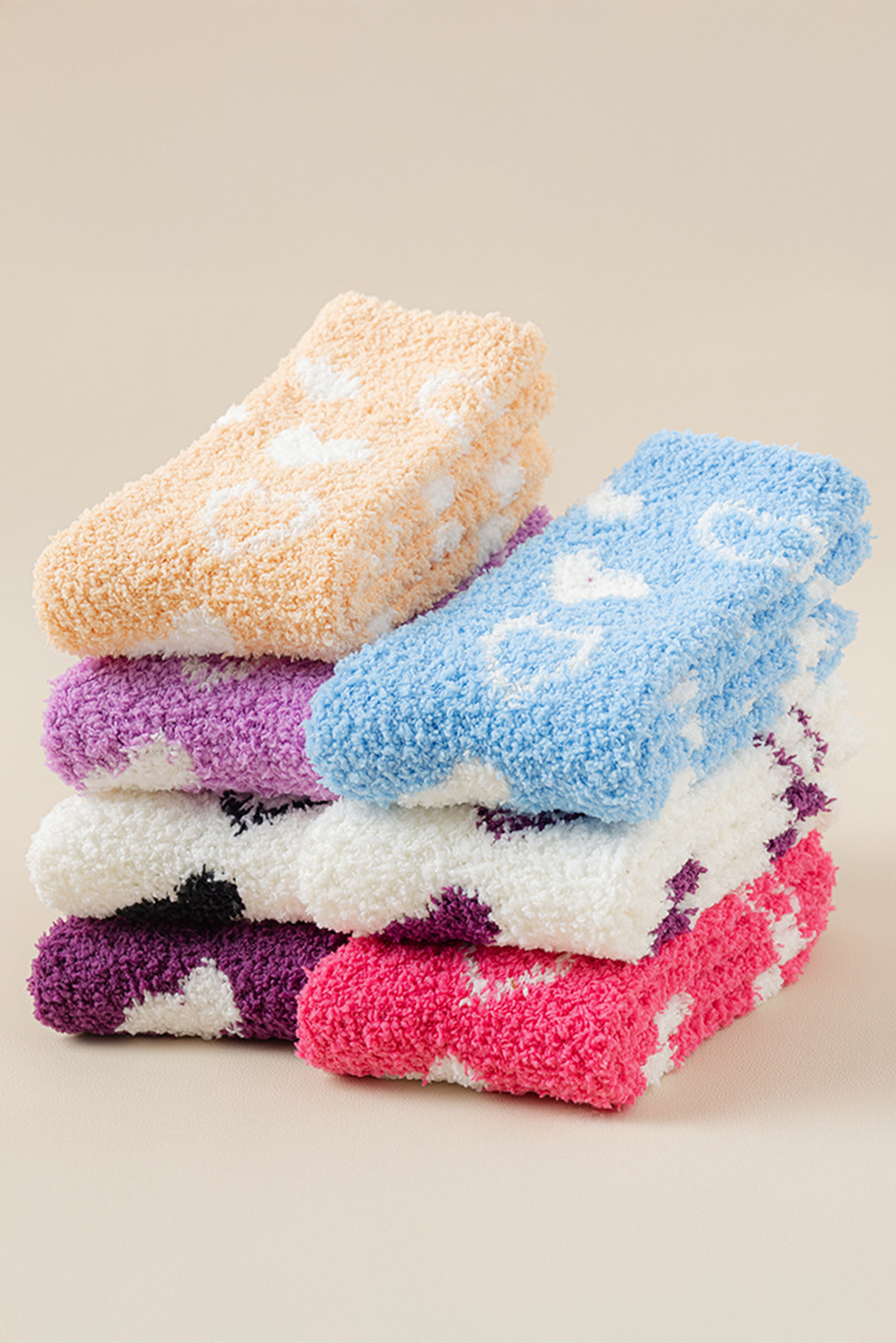 Strawberry Pink Heart Shape Print Coral Fleece Thick Crew Socks