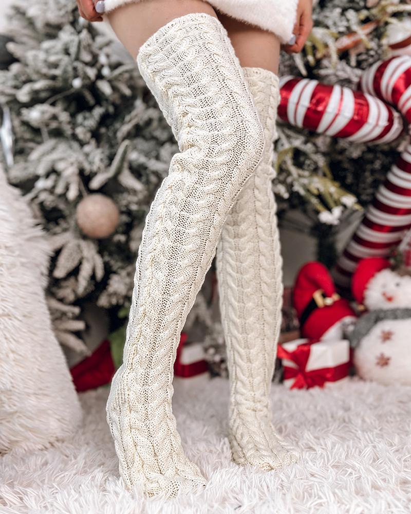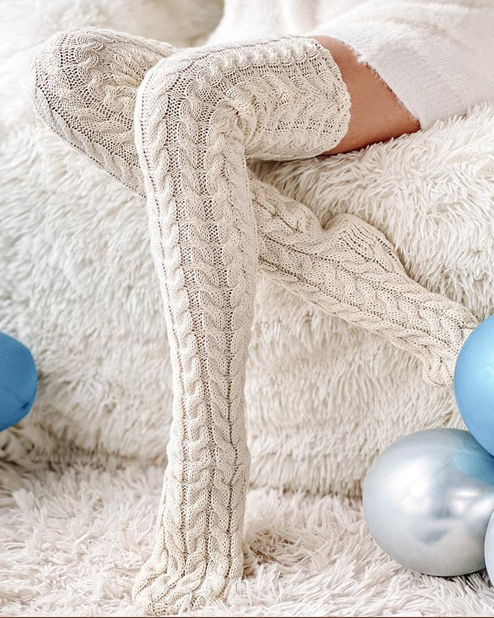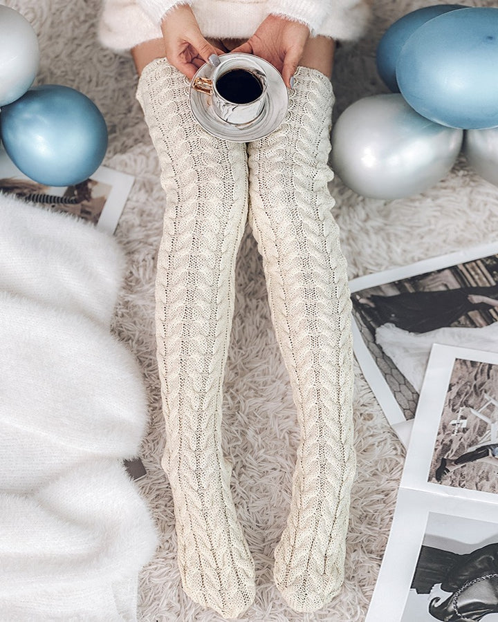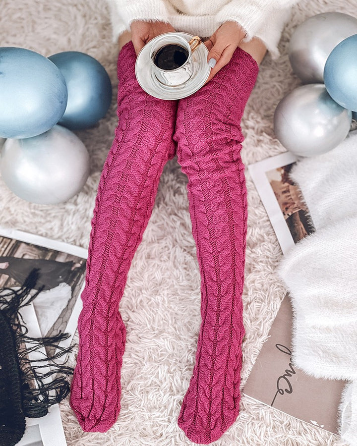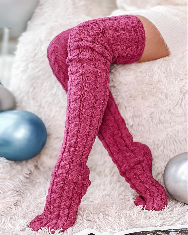1Pair Cable Knit Over The Calf Fluffy Tube Socks
