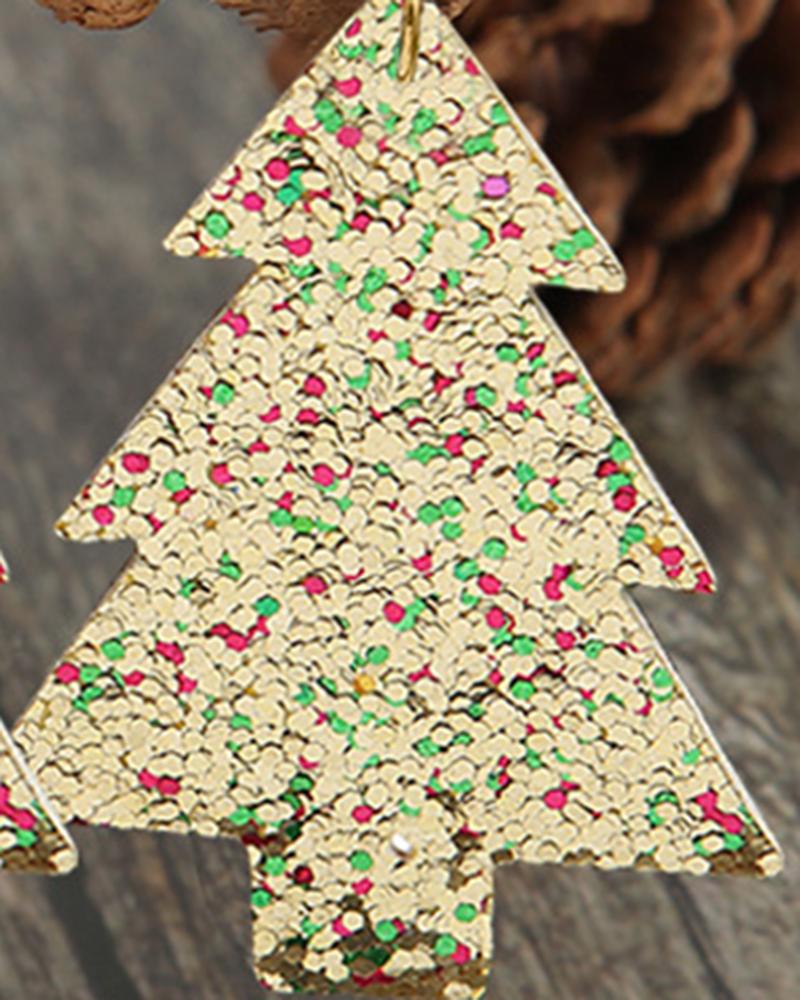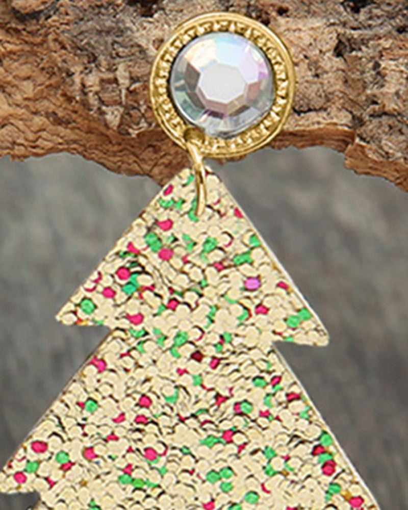 1Pair Christmas Tree Shaped Rhinestone Sequin Drop Earrings
