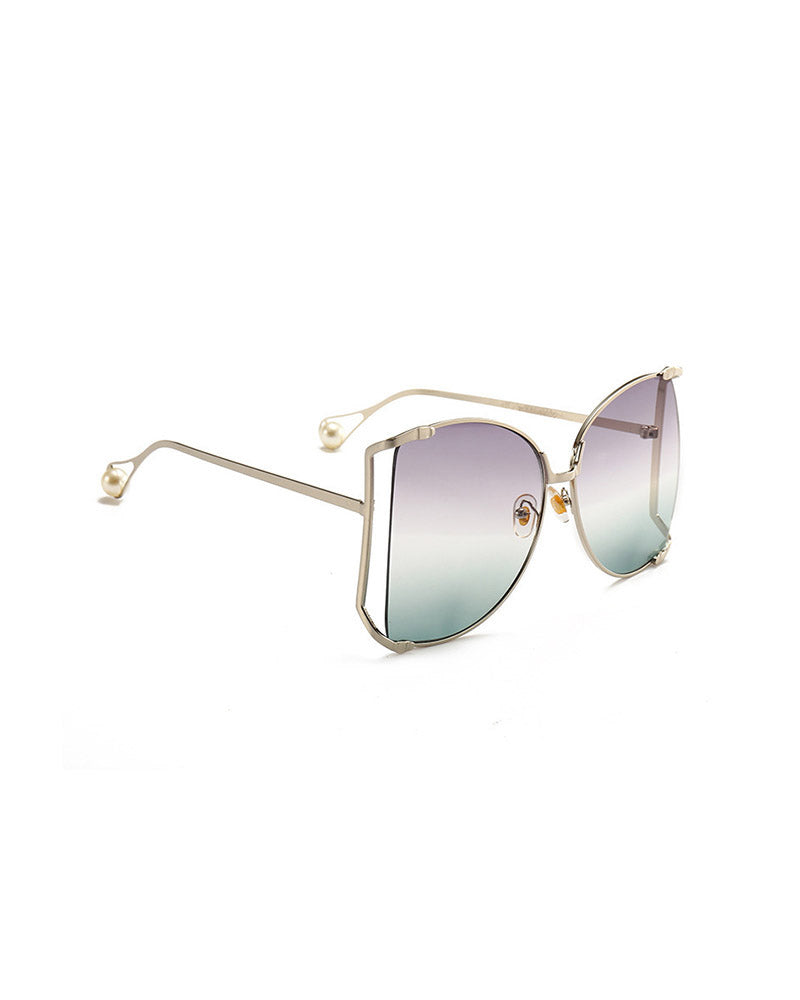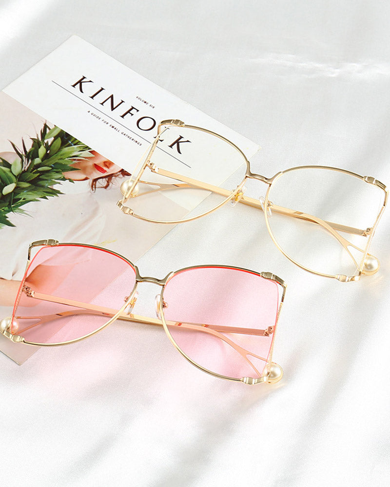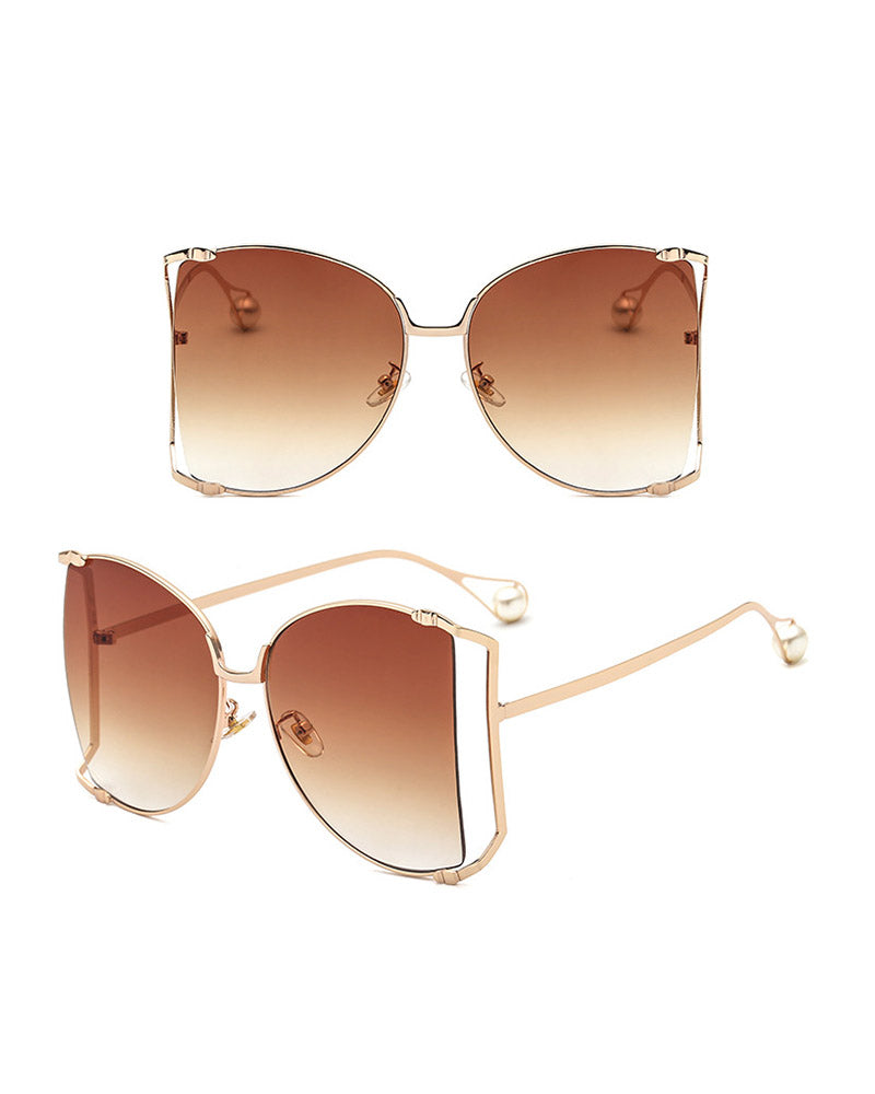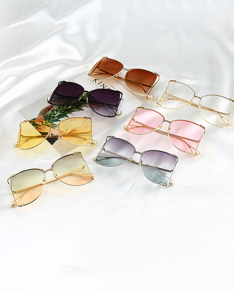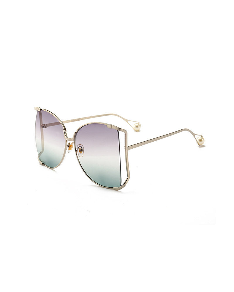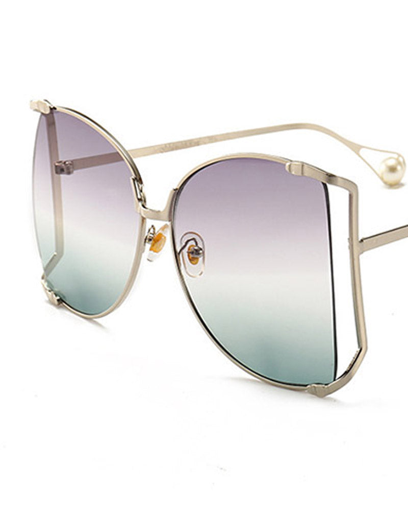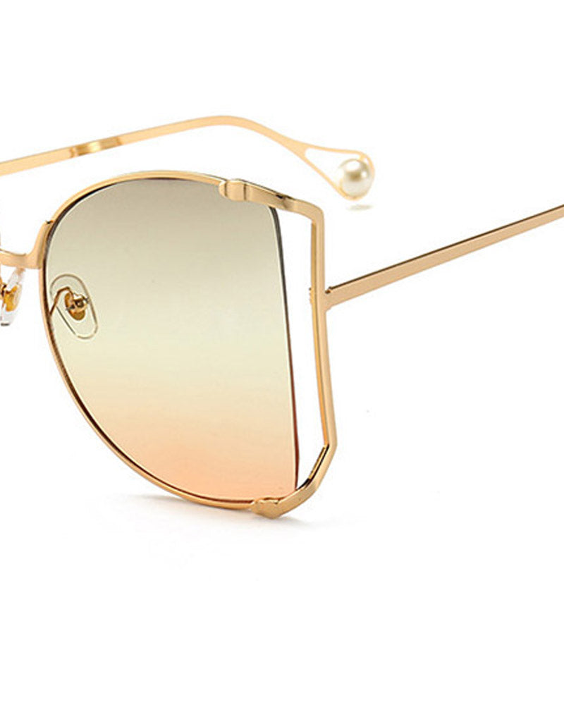 1Pair Pearls Half Round Big Frame Gradient Sunglasses
