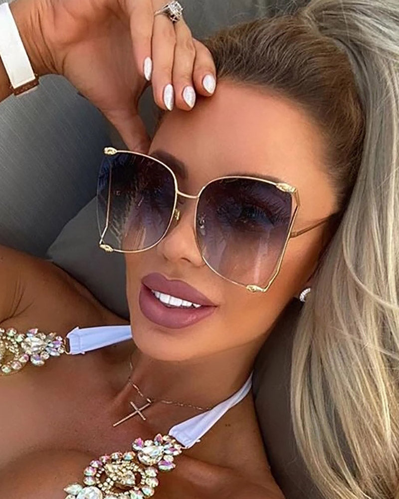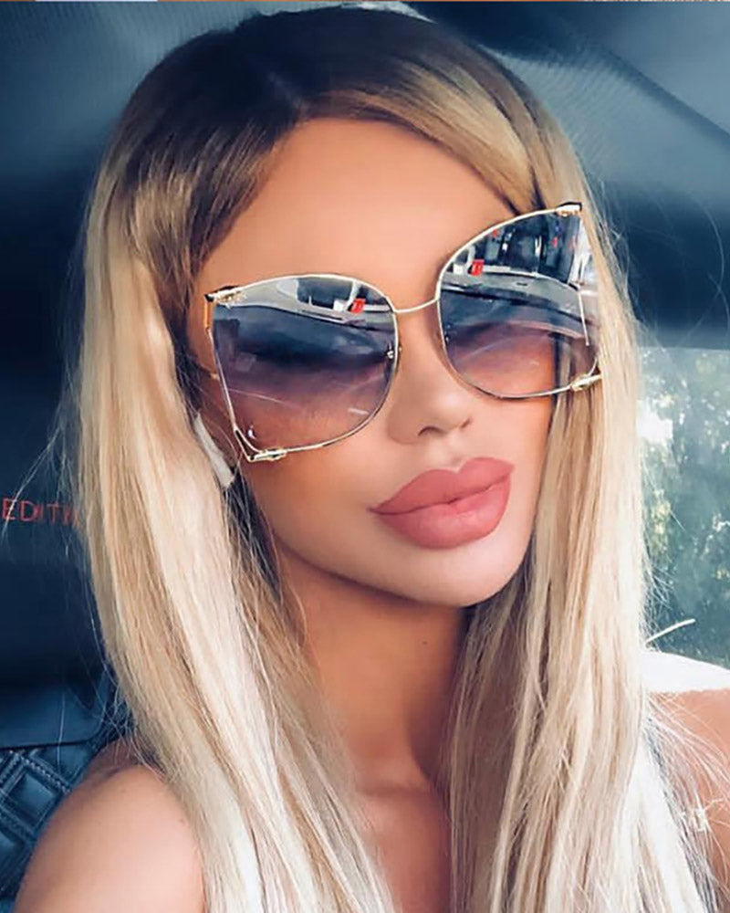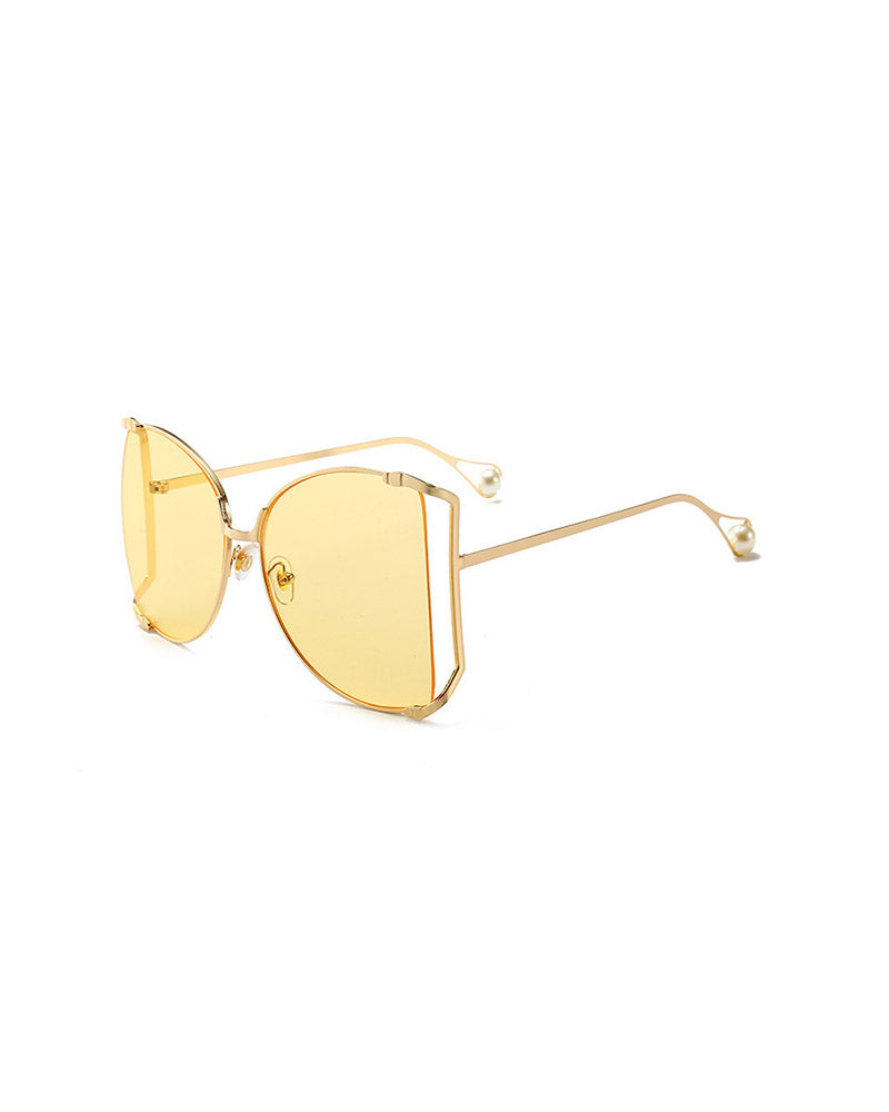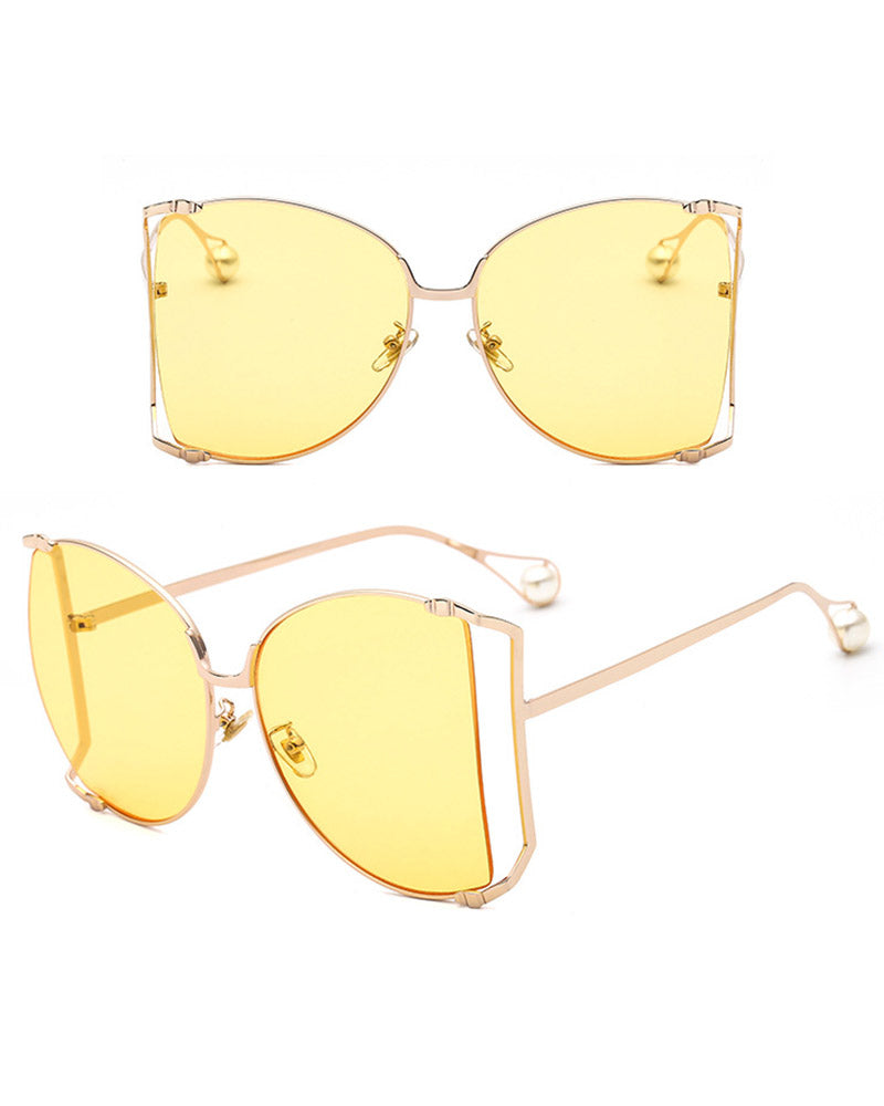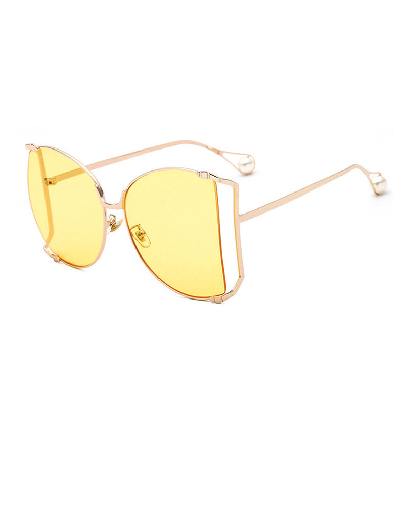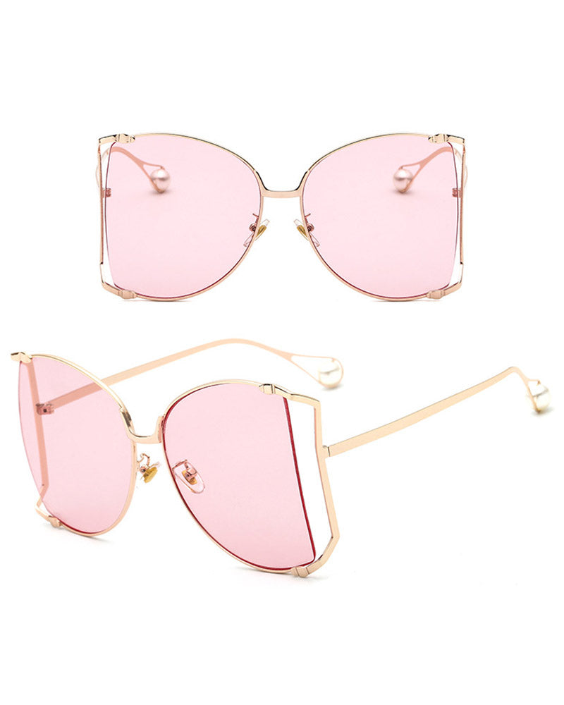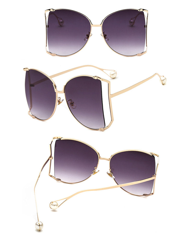 1Pair Pearls Half Round Big Frame Gradient Sunglasses