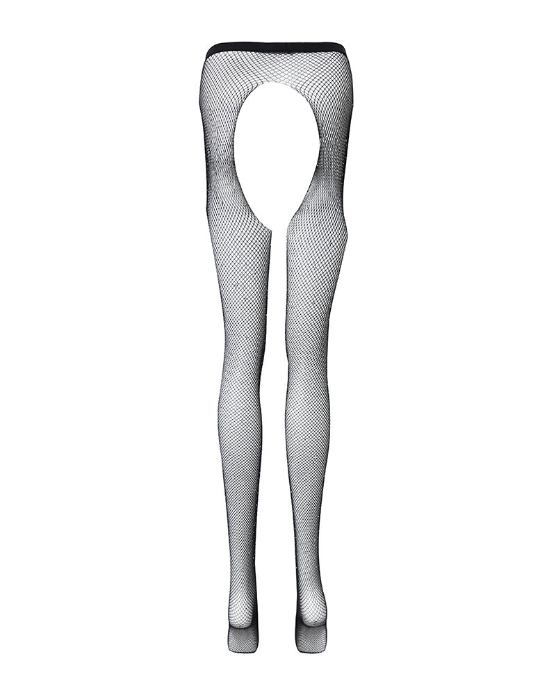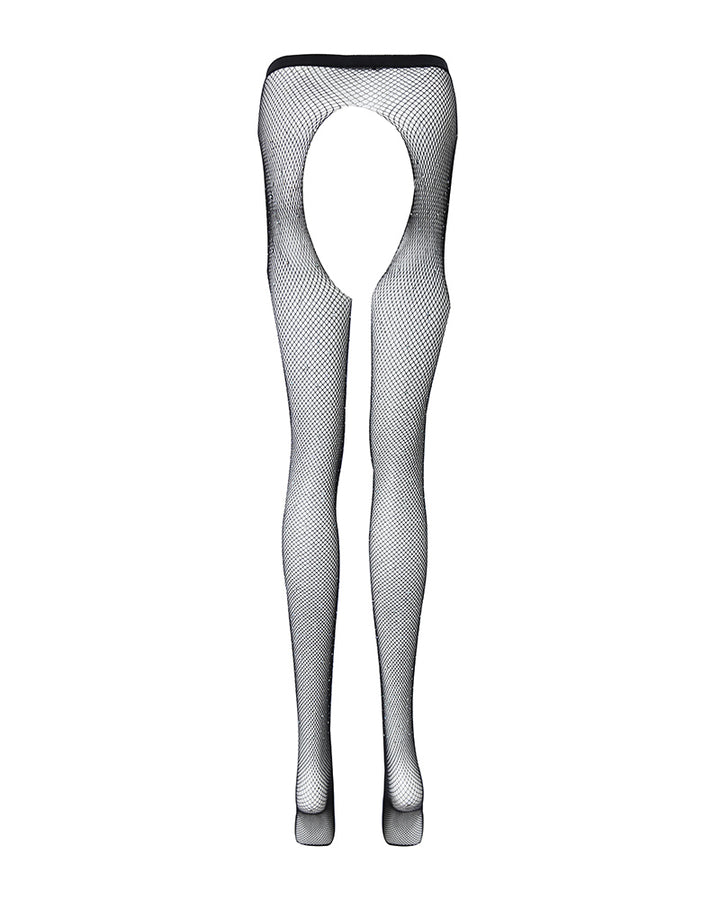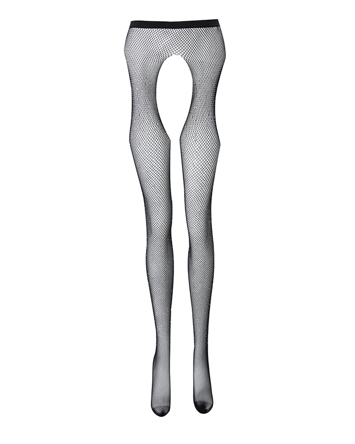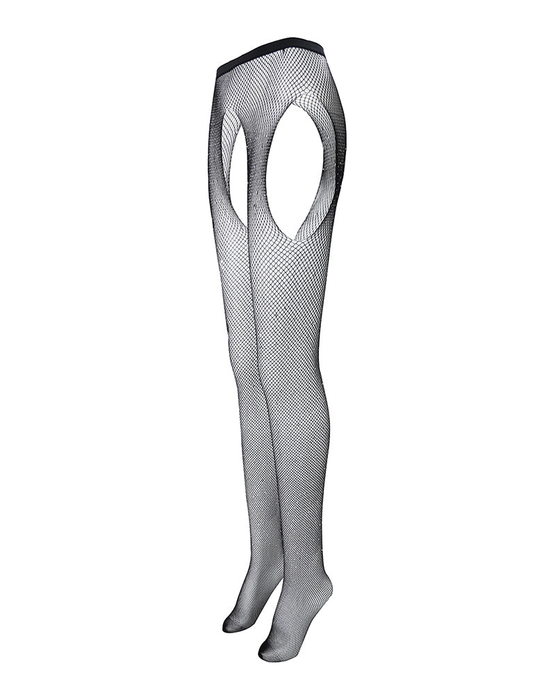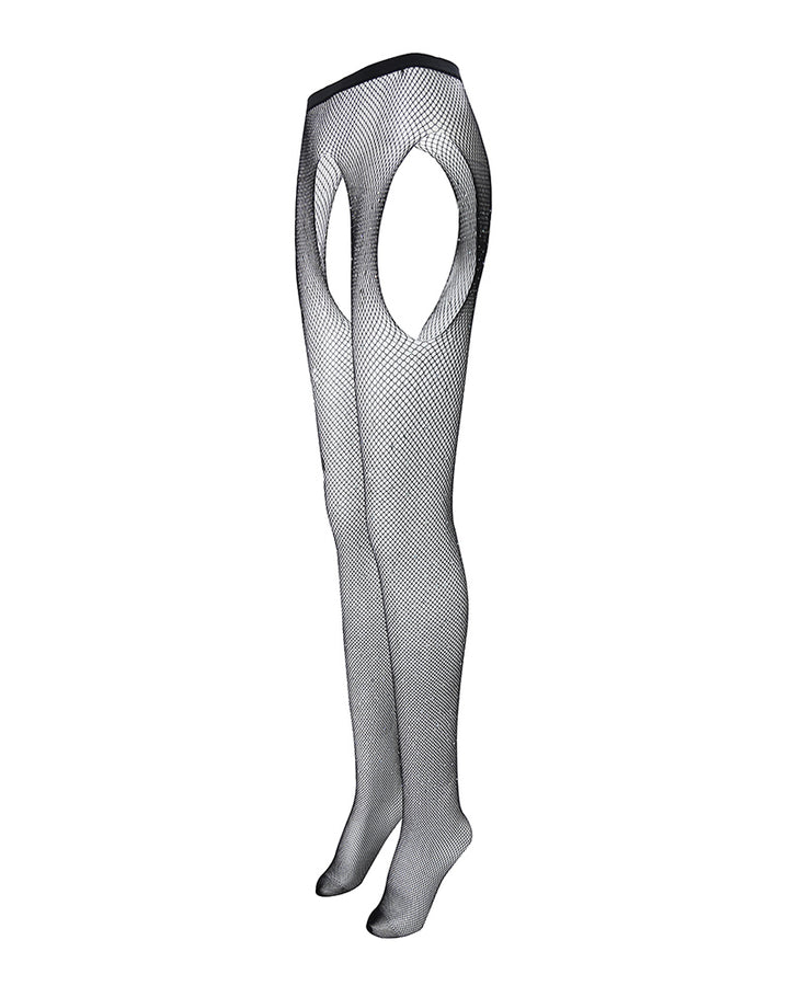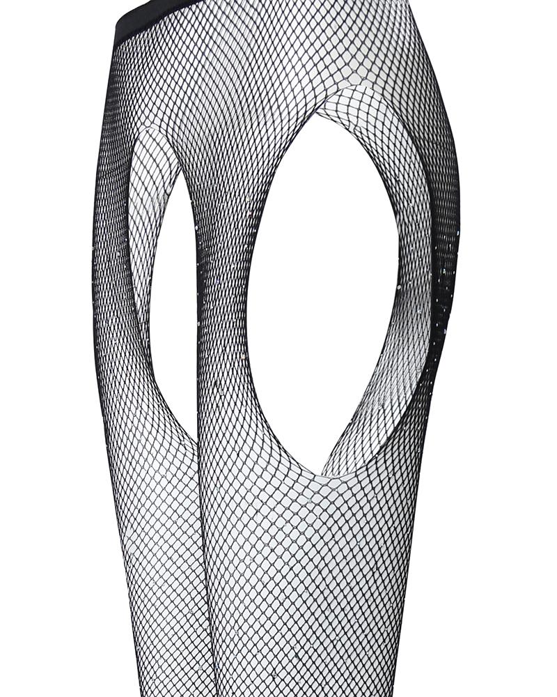 1Pair Rhinestone Cutout Fishnet Design Crotchless Pantyhose Stockings