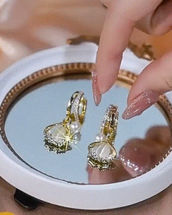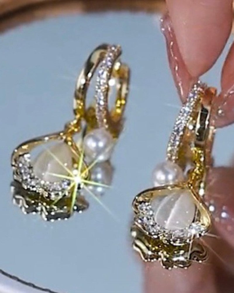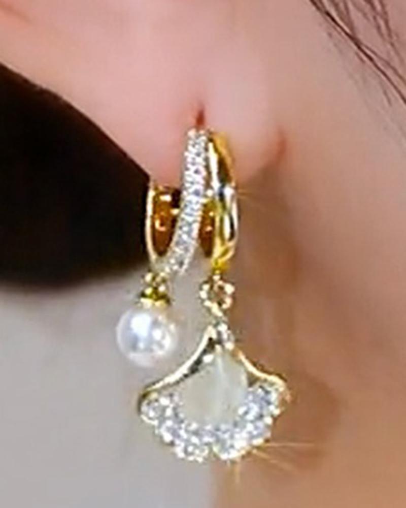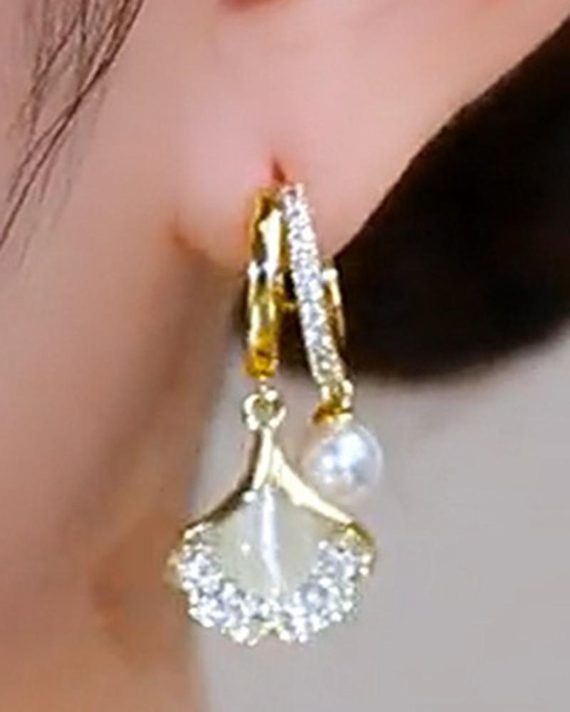 1Pair Rhinestone Ginkgo Leaf Hoop Earrings