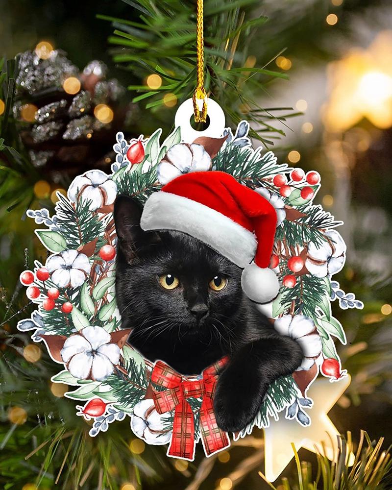 1pc Black Cat Wreath Acrylic Xmas Ornament Christmas Tree Hanging Decoration