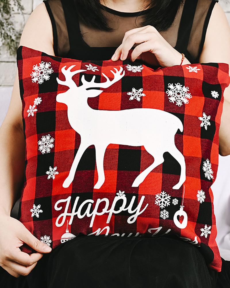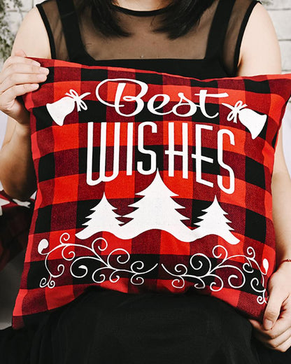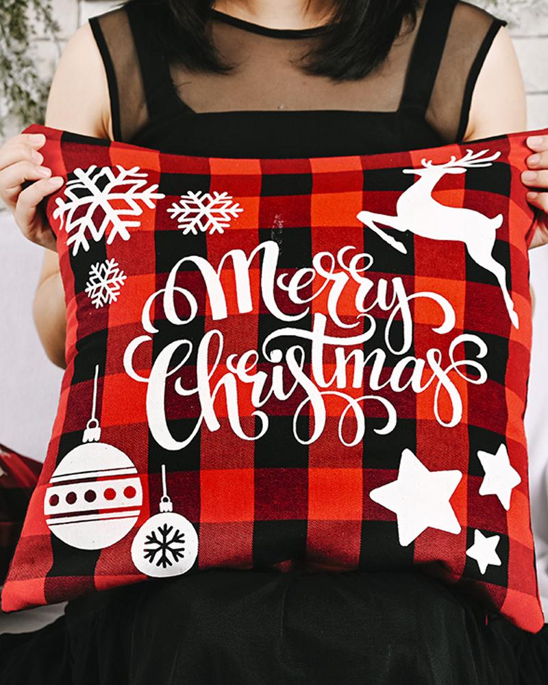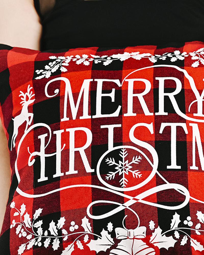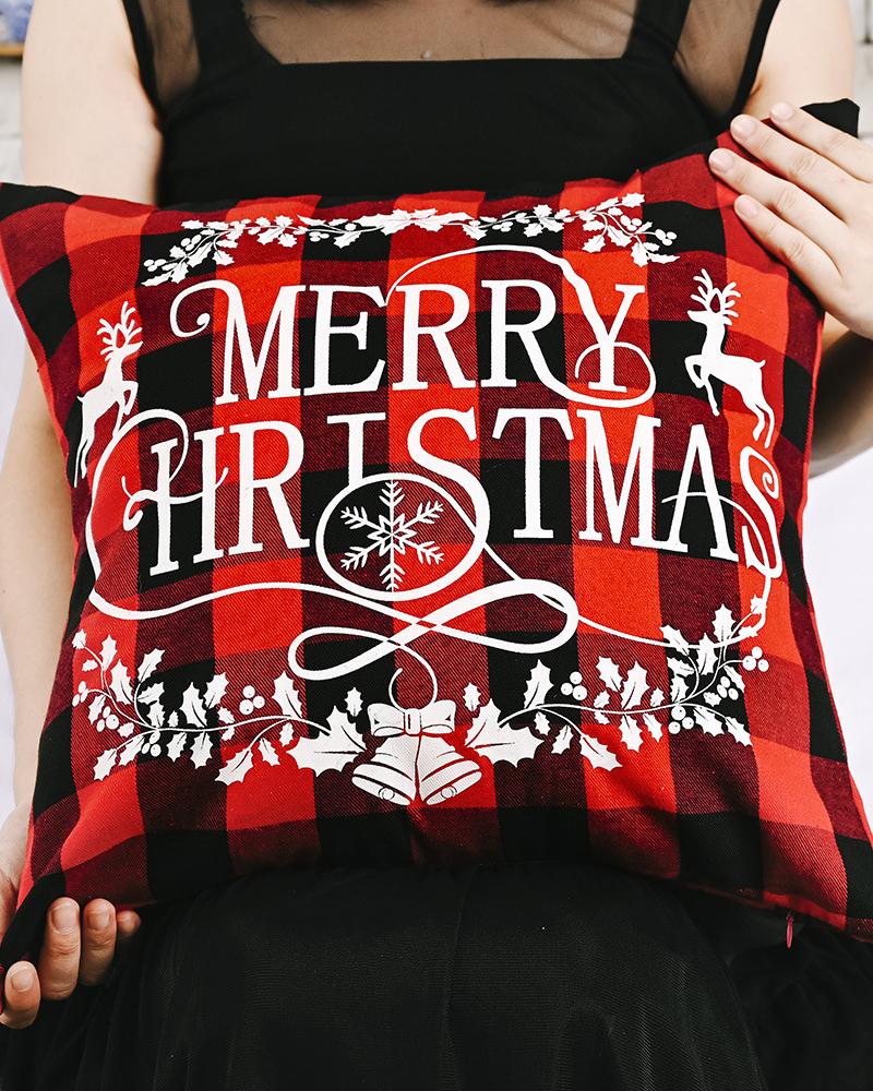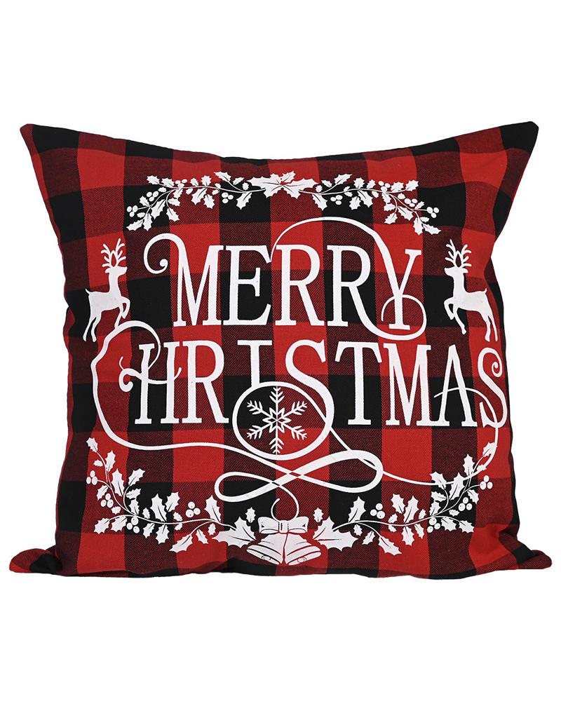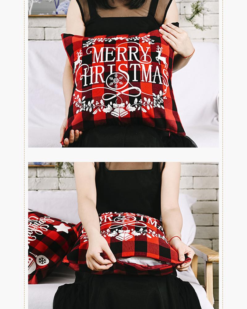 1pc Christmas Plaid Pillow Cover 18x18inch Farmhouse Pillow Cover Holiday Rustic Linen Pillow Case Sofa Couch Throw Christmas Decoration