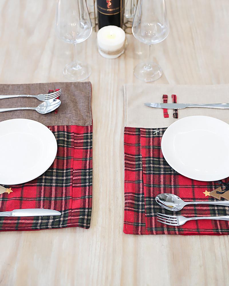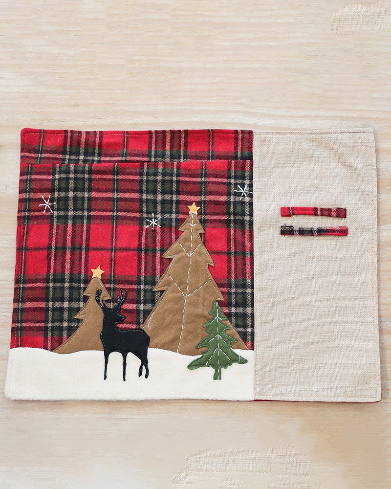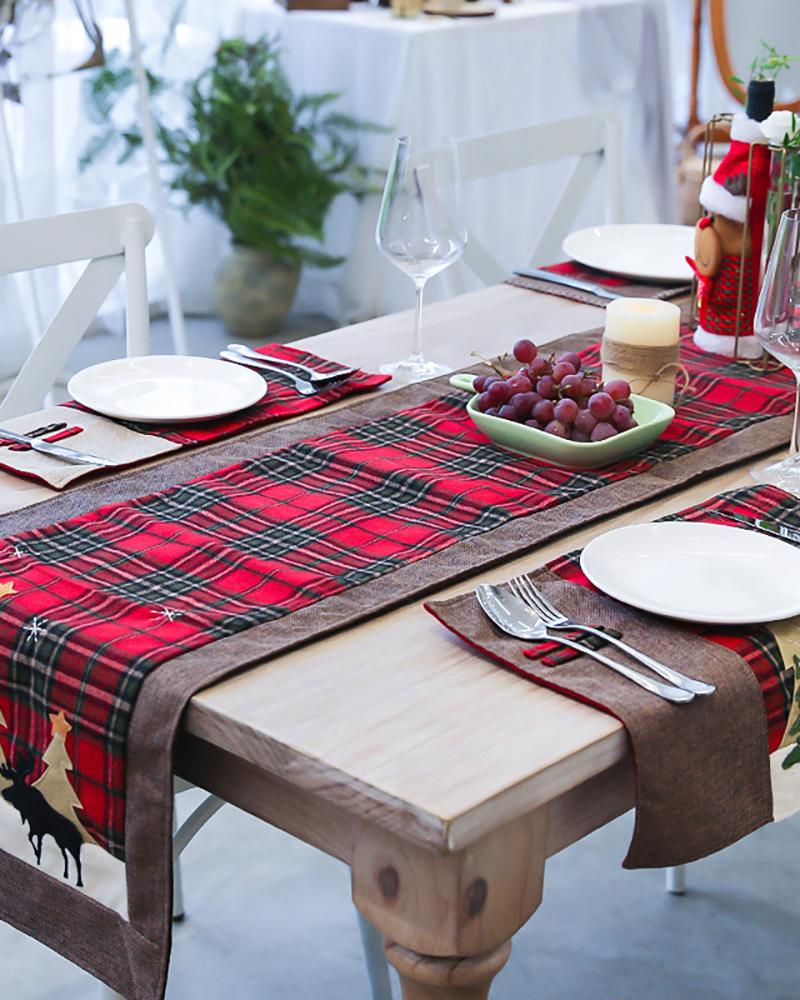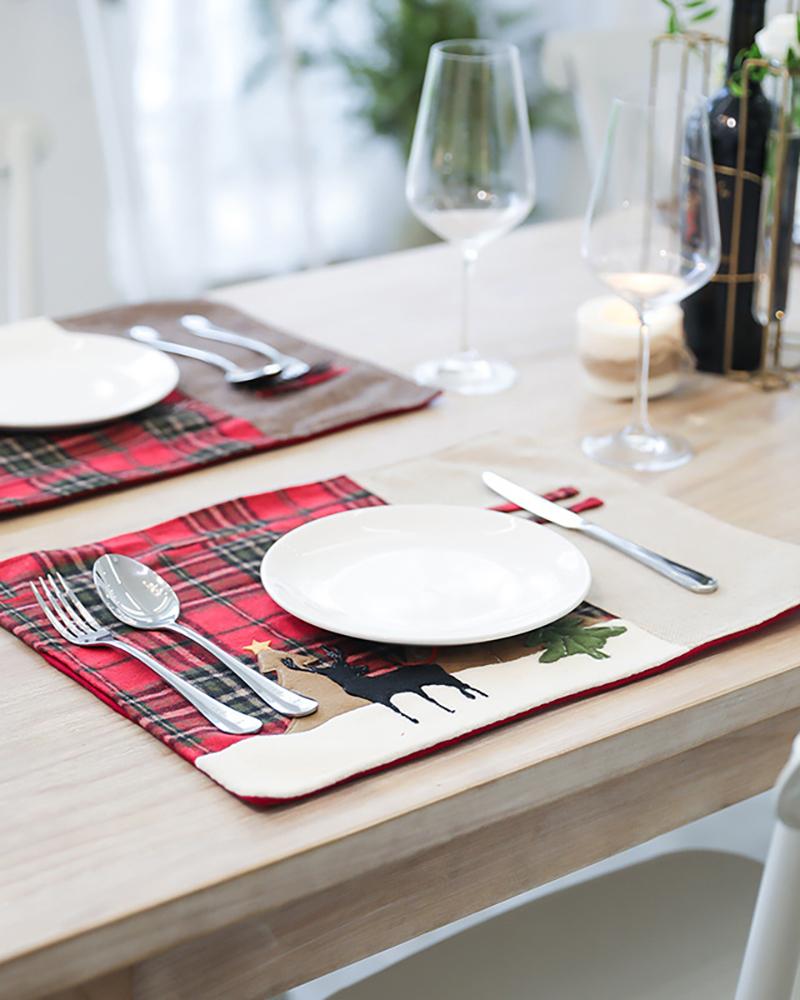 1pc Christmas Table Mat Double Layer Buffalo Table Decoration For Christmas Ornament Family Dinner Holiday Party