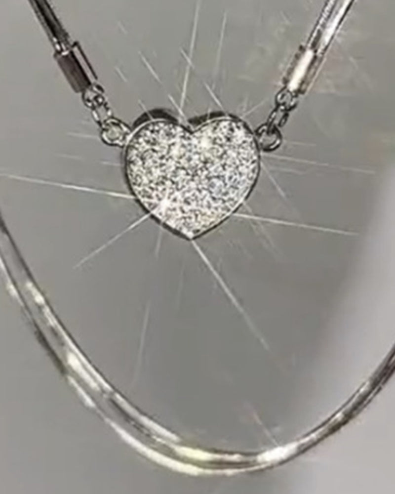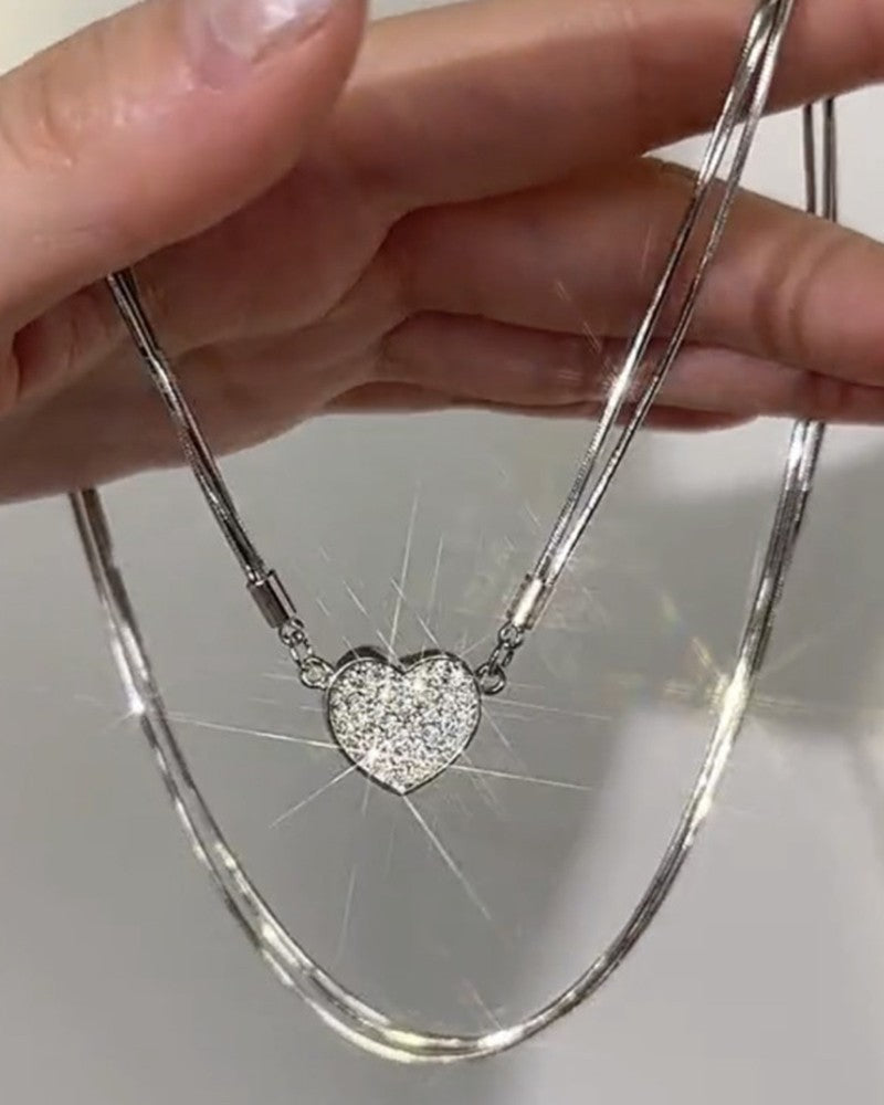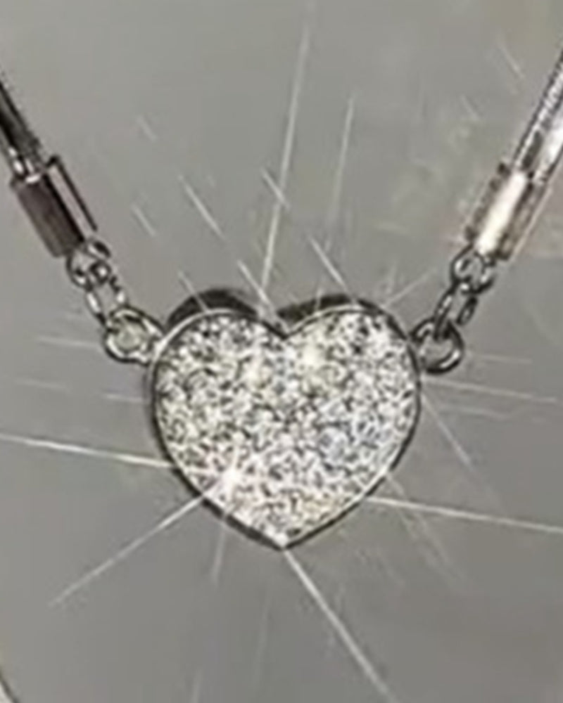 1pc Faux Zircon Magnet Heart Pendant Necklace