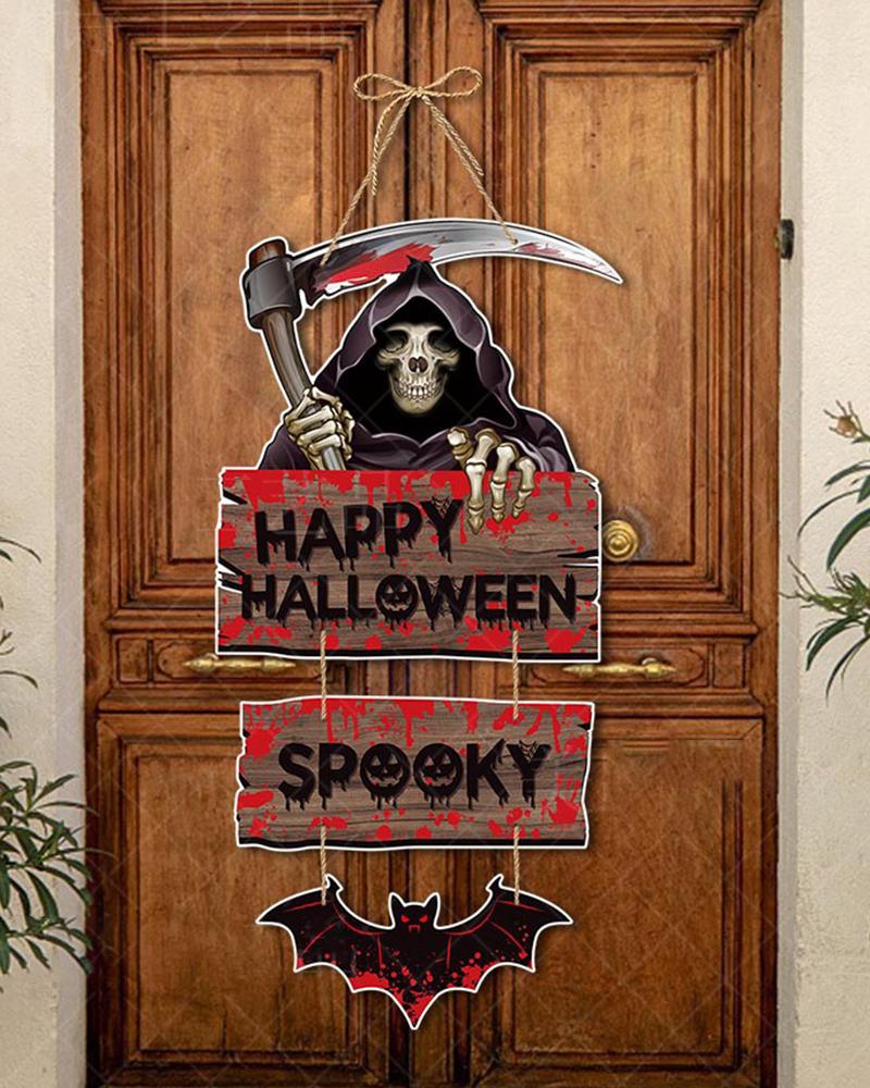 1pc Happy Halloween Spooky Skeleton Home Decor Witch Pumpkin Hanging Welcome Door Decoration
