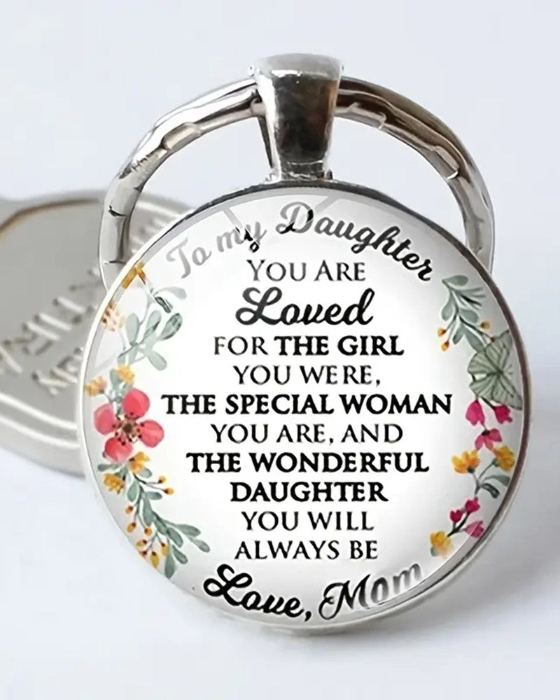 1pc Mother's Day Gift To My Daughter Love Mom Time Stone Chain Metal Keychain Pendant