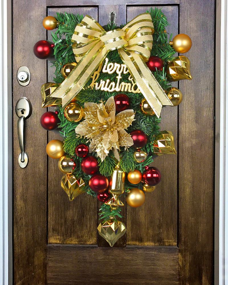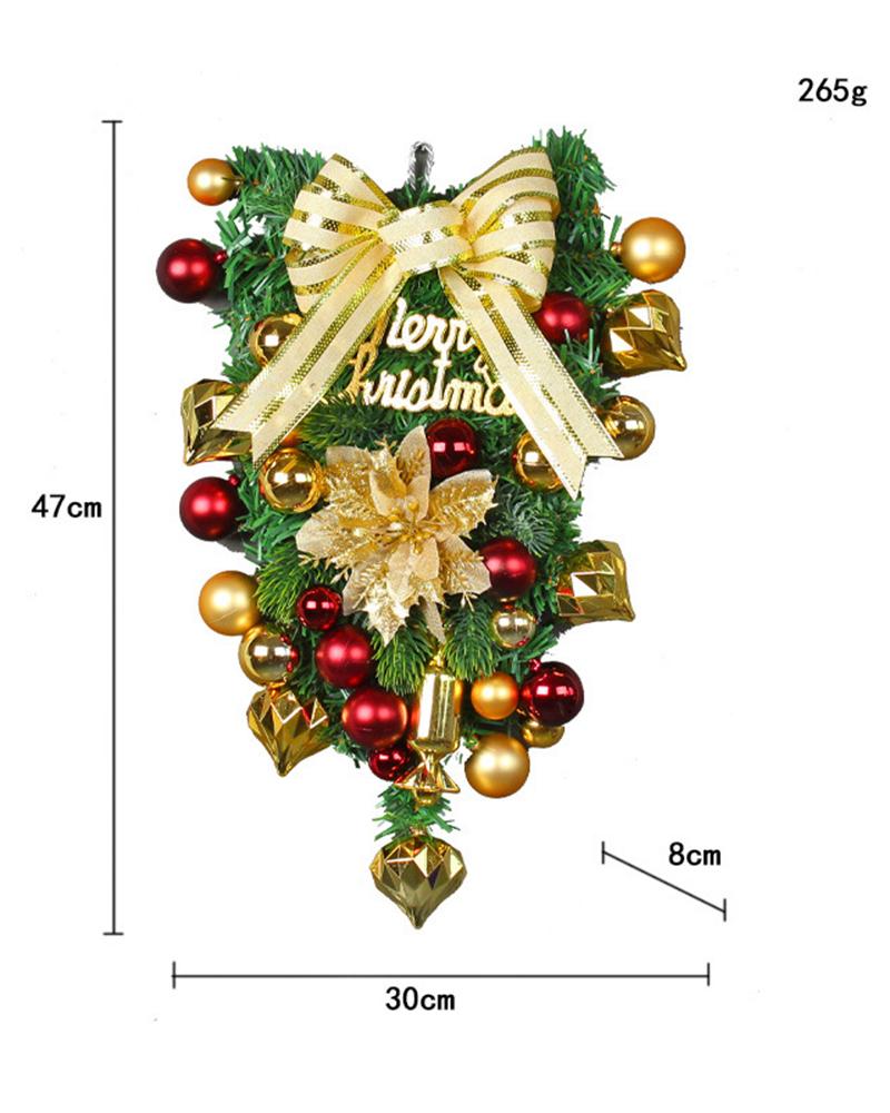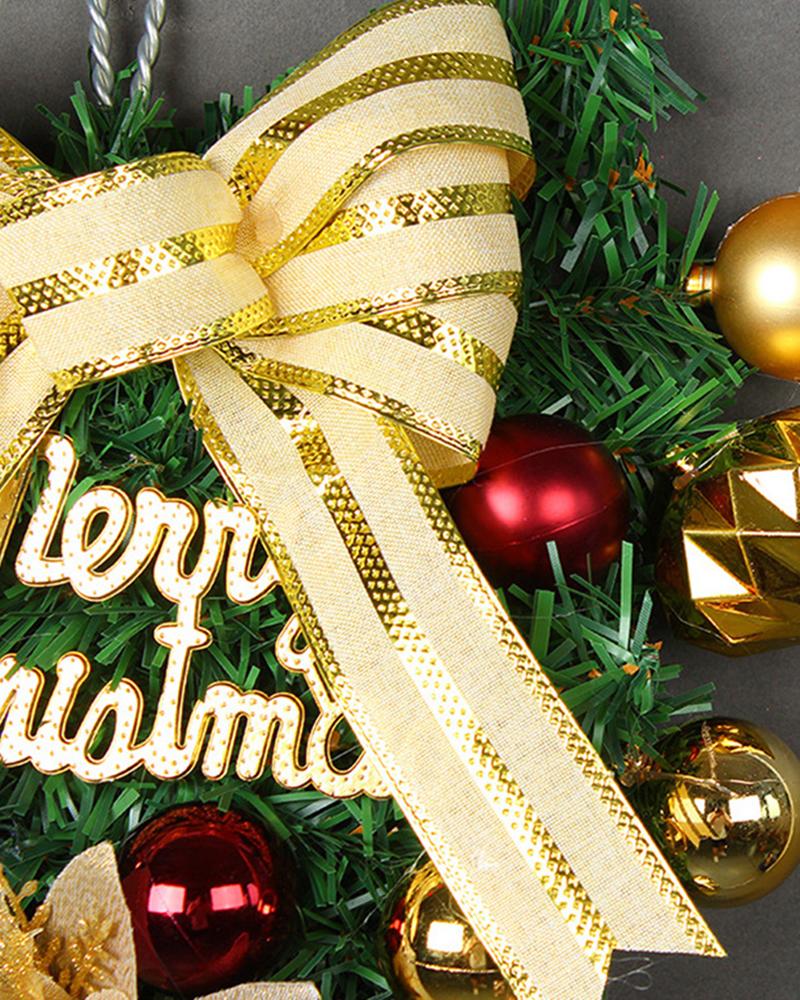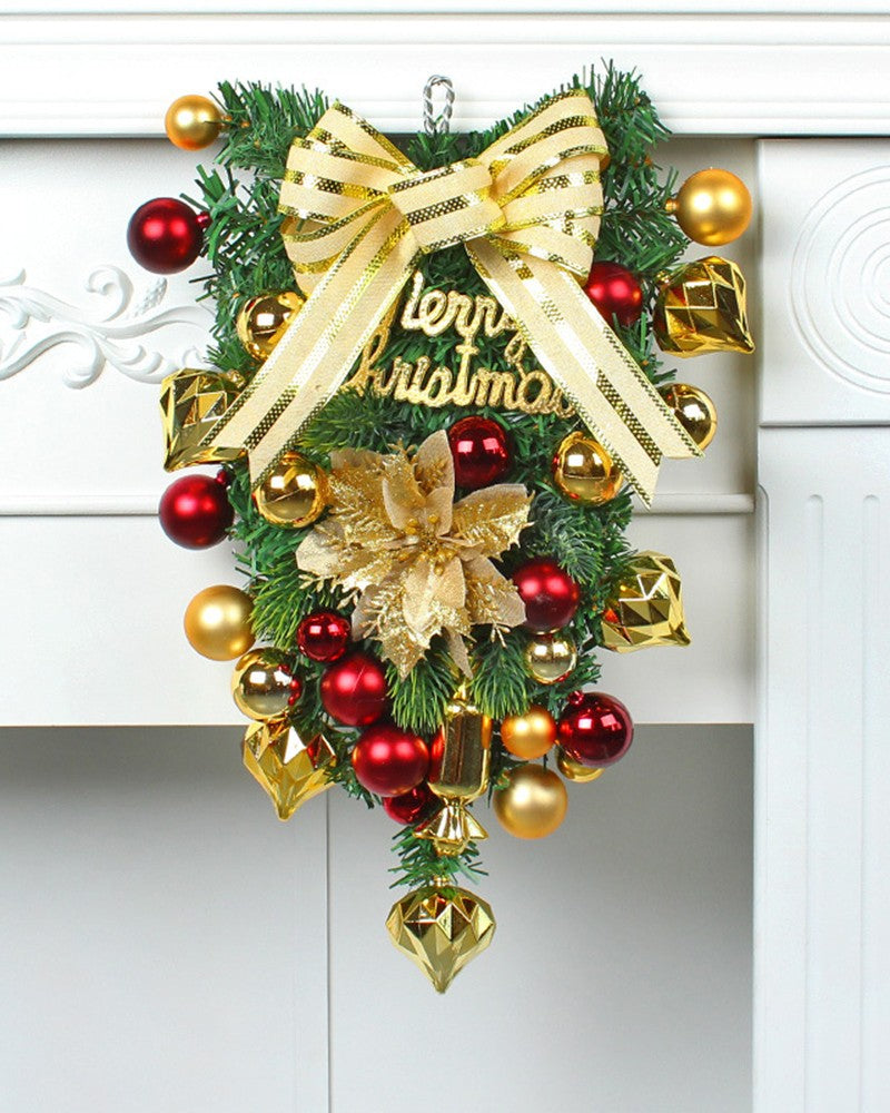 1pcs Christmas Poinsettia Swag Garland Wreath Xmas Balls Bowknot Decor Front Door Hanging Decoration