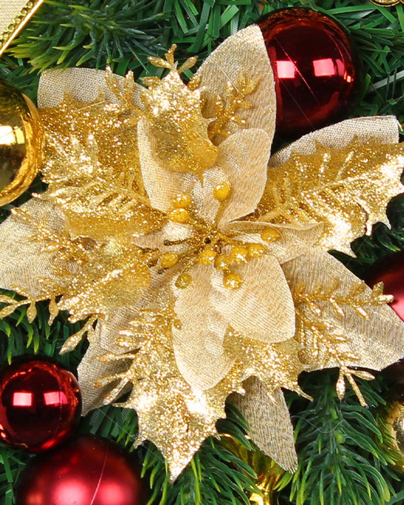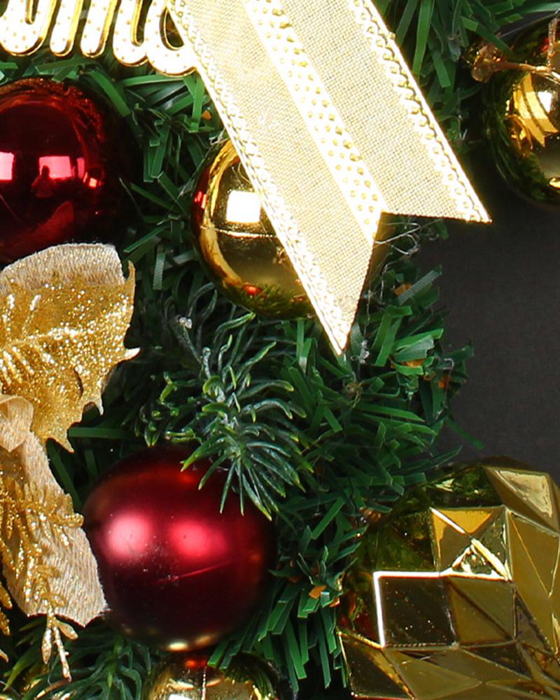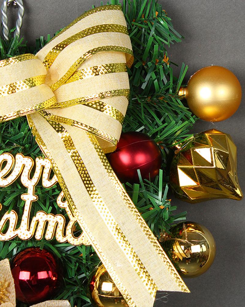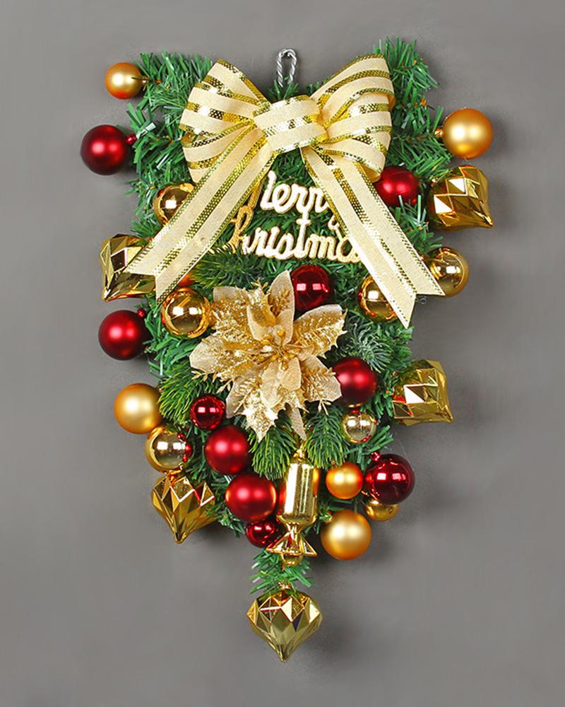 1pcs Christmas Poinsettia Swag Garland Wreath Xmas Balls Bowknot Decor Front Door Hanging Decoration