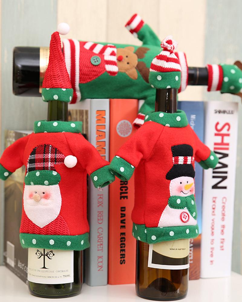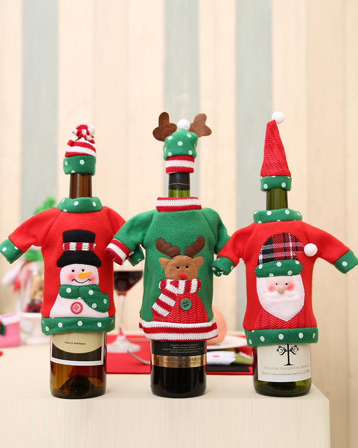 1Set Christmas Wine Bottle Covers Champagne Wine Bottle Cap Toppers Holiday Christmas Decoration Ornaments Party Supplies