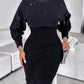 2 Piece Outfits Sets Mock Neck Rhinestone Decor Knit Crop Sweater and Slip Bodycon Midi Dress