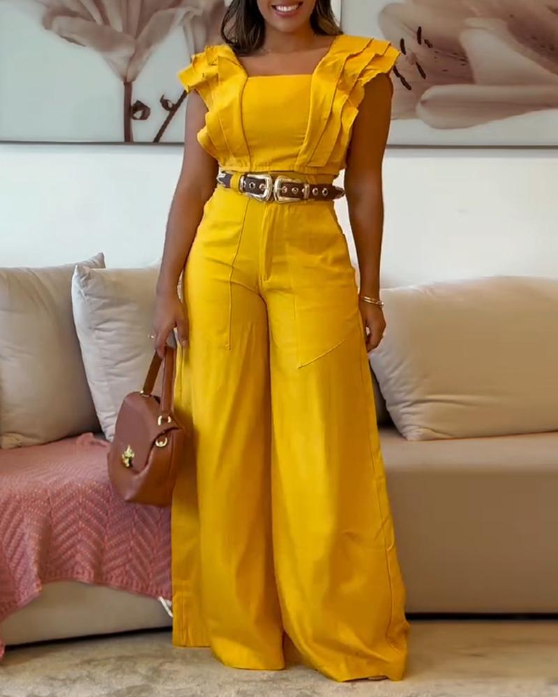 2 Piece Sqaure Neck Flutter Sleeve Shirred Top High Waist Wide Leg Pants Elegant Pants Set