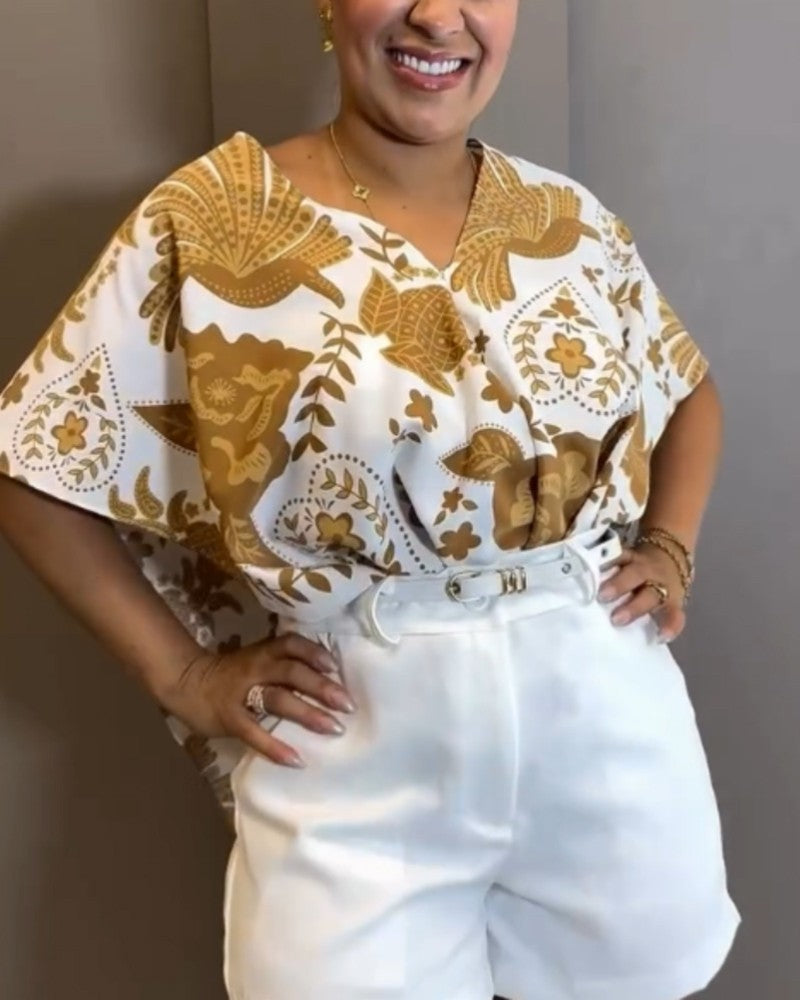 2 Pieces Multi Ways Plants Print Top with Same Color Bandeau Matching Set