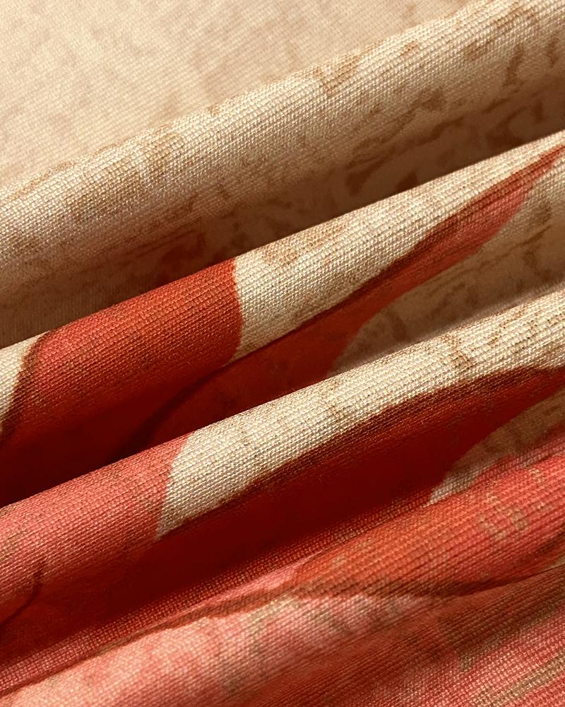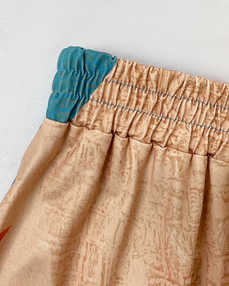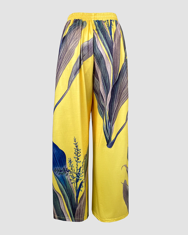 2 Pieces Outfit Abstract Print Cold Shoulder Batwing Sleeve Top and Casual Wide Leg Pants Set