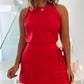 2 Pieces Outfit Halter Sleeveless Back Hollow out Top and High Waist Side Tied Detail A Line Skirt Set