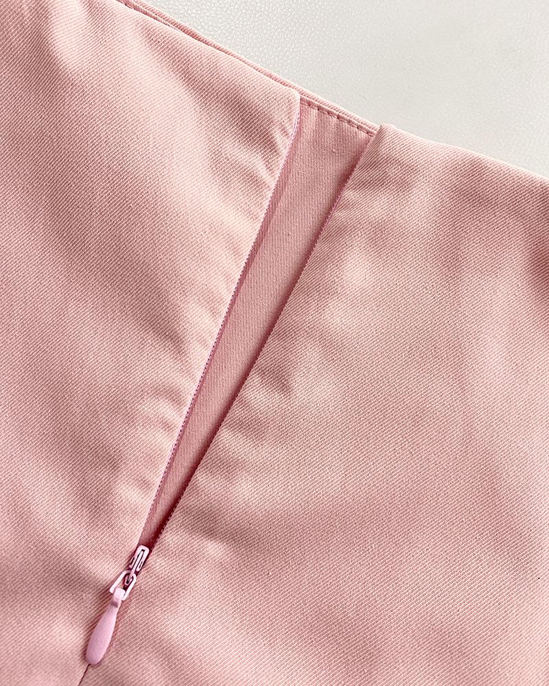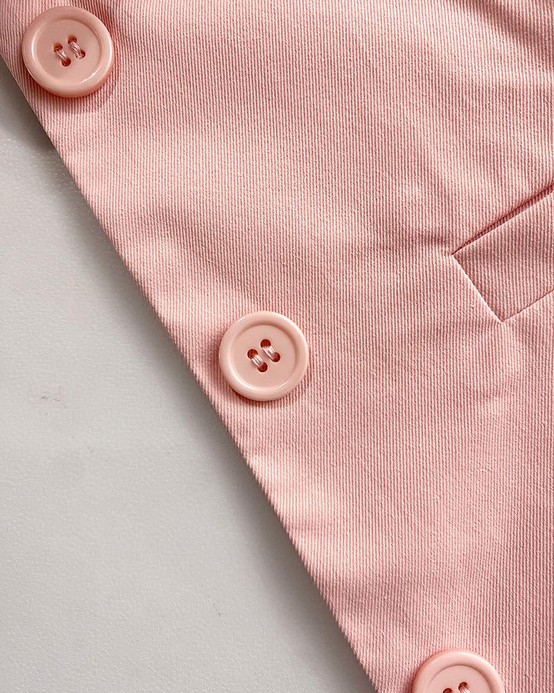 2 Pieces Outfit Plain Halter V Neck Button Front Backless Tank Top and Casual Side Slit Skirt Set