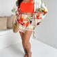 2 Pieces Outfits Tropical Print V Neck Long Sleeve Coat and Casual Tied Detail Asymmetrical Split Skirt Set