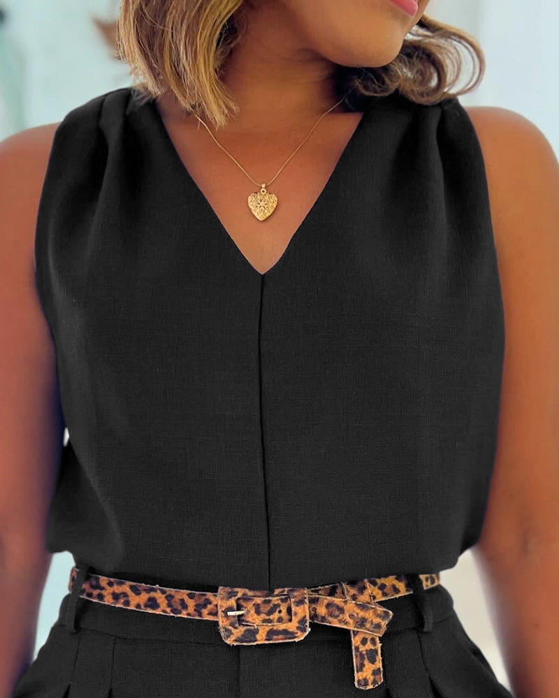 2 Pieces Summer Outfits V Neck Sleeveless Ruched Tank and Casual Pocket Design Shorts Set