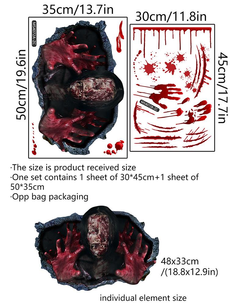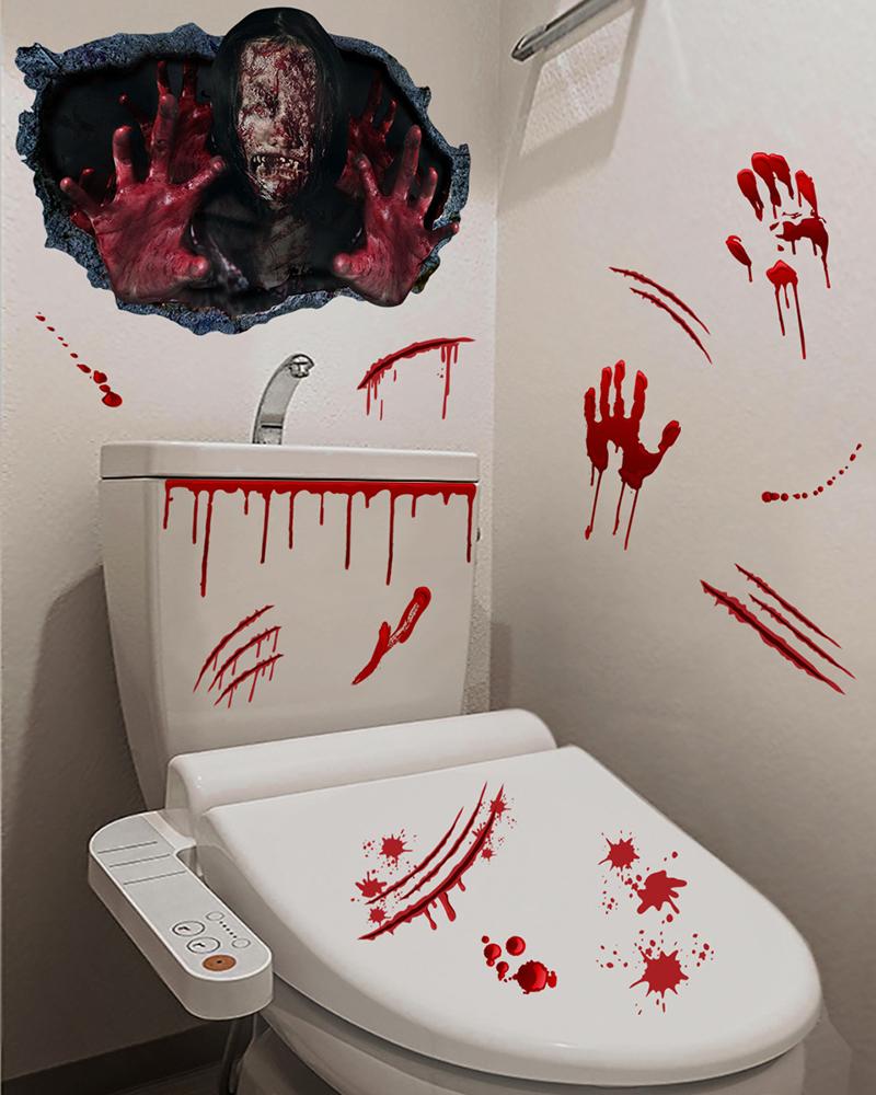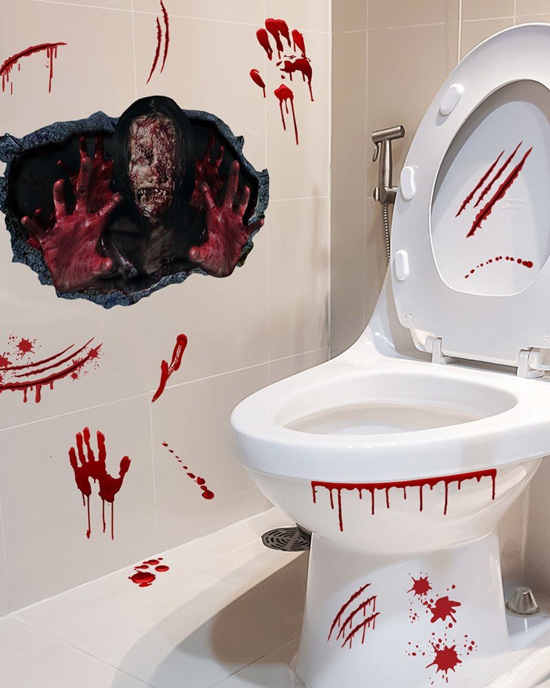 2 Sheets Halloween Bloody Ghost Handprint Wall Decoration Bathroom Stickers