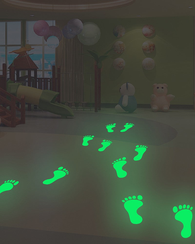 2 Sheets Luminous Footprint Stickers Funny Decor For Amusement Park Kindergarten Bedroom Great Wall Decorations
