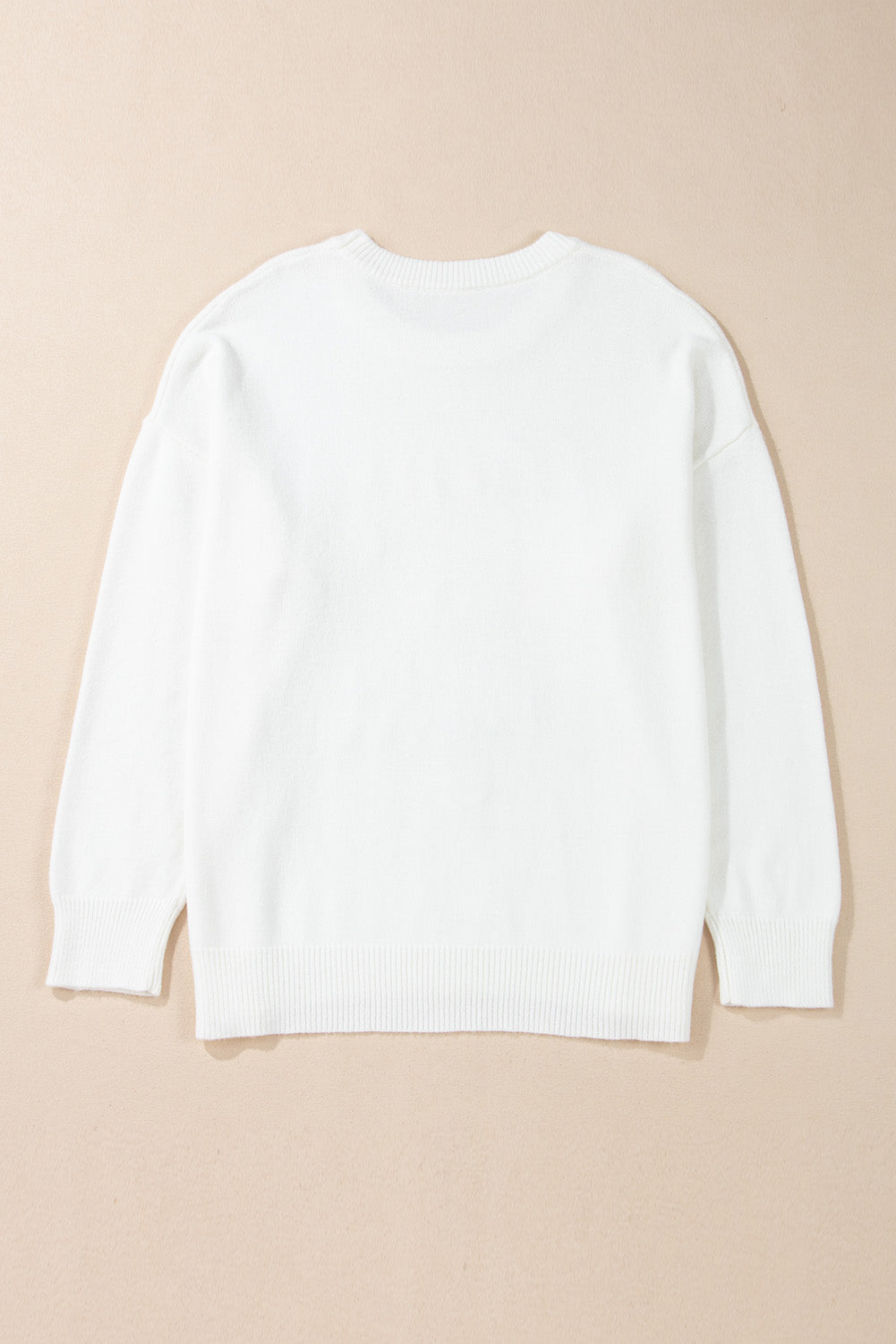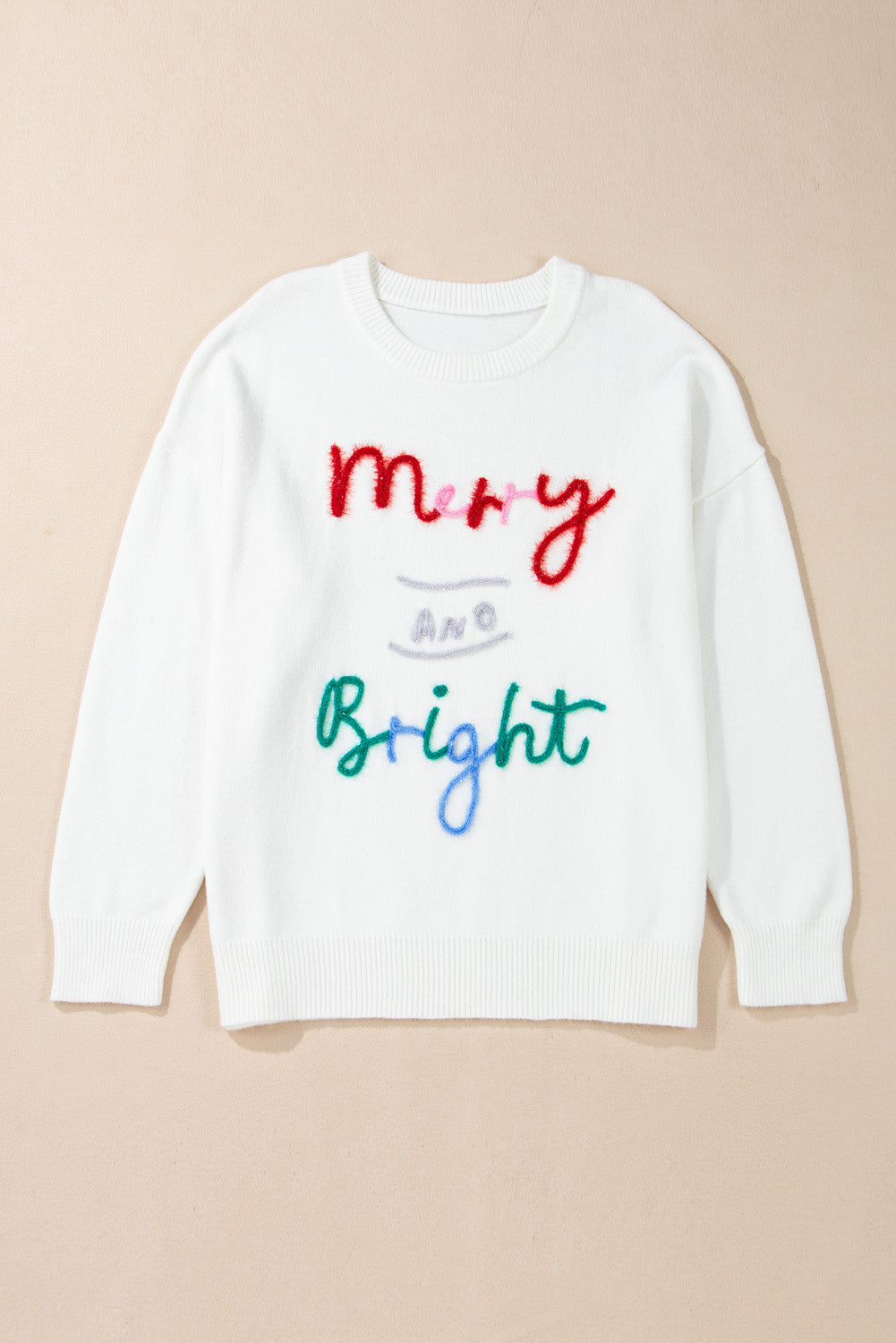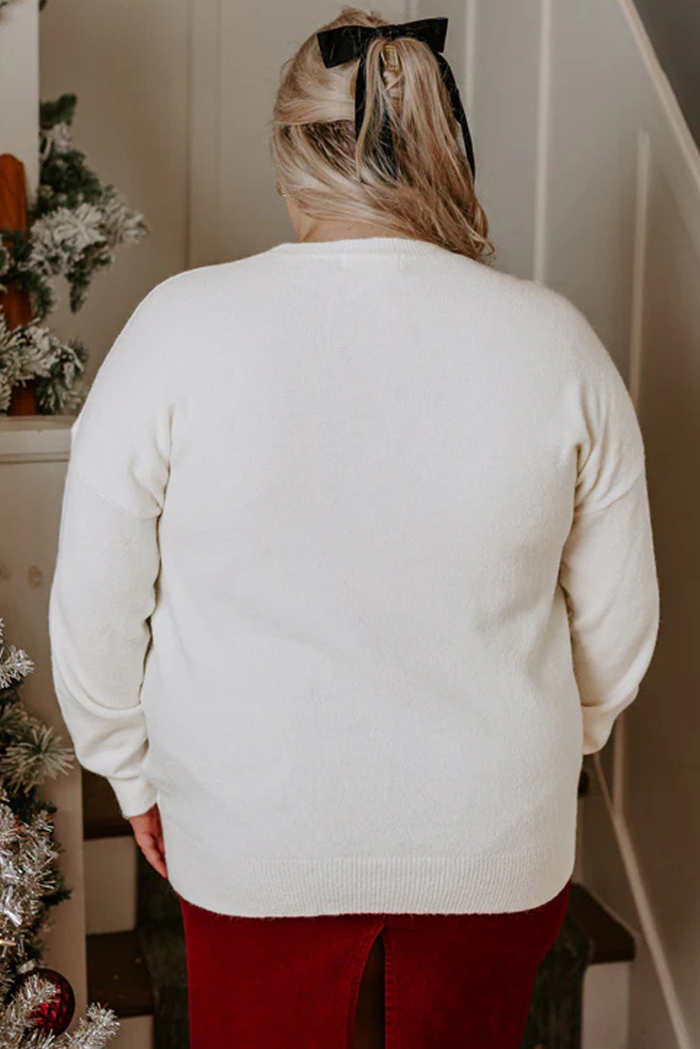 White Tinsel Merry AND Bright Pattern Plus Size Christmas Sweater
