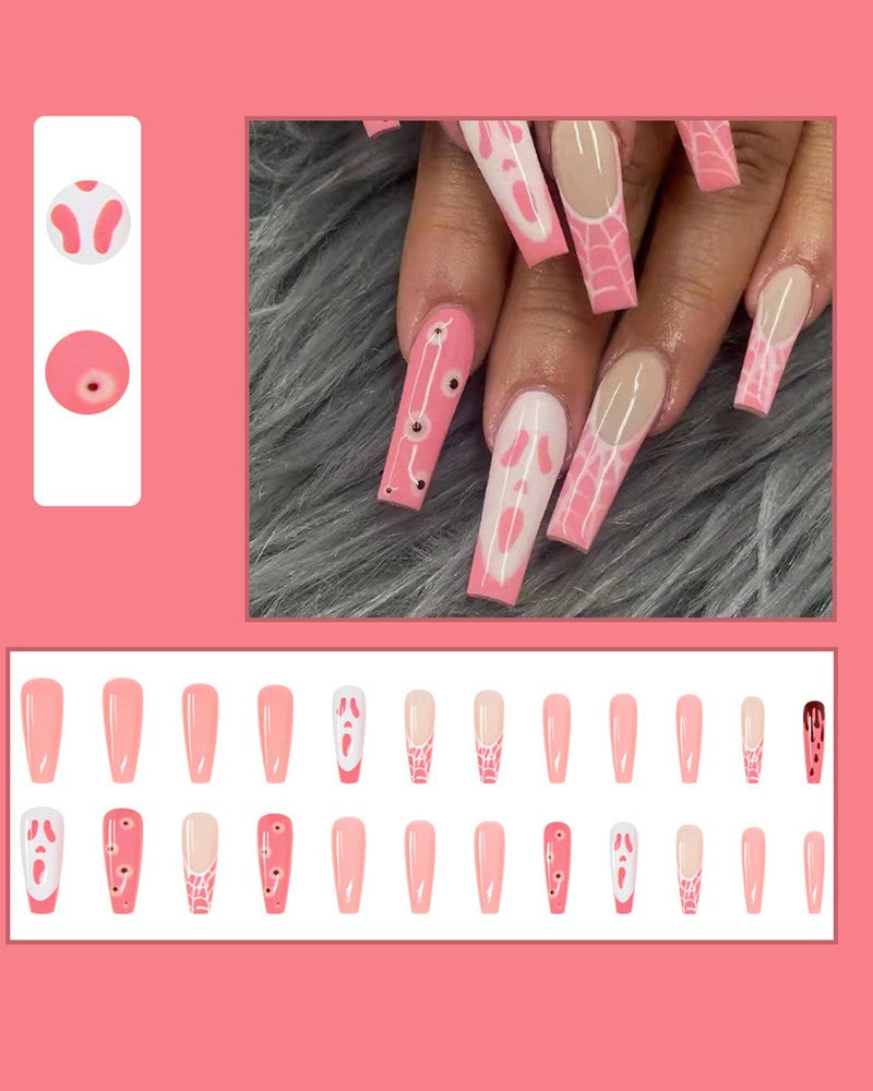 24pcs Halloween Ghost Web Pink Removable Fake Coffin Nails Set