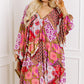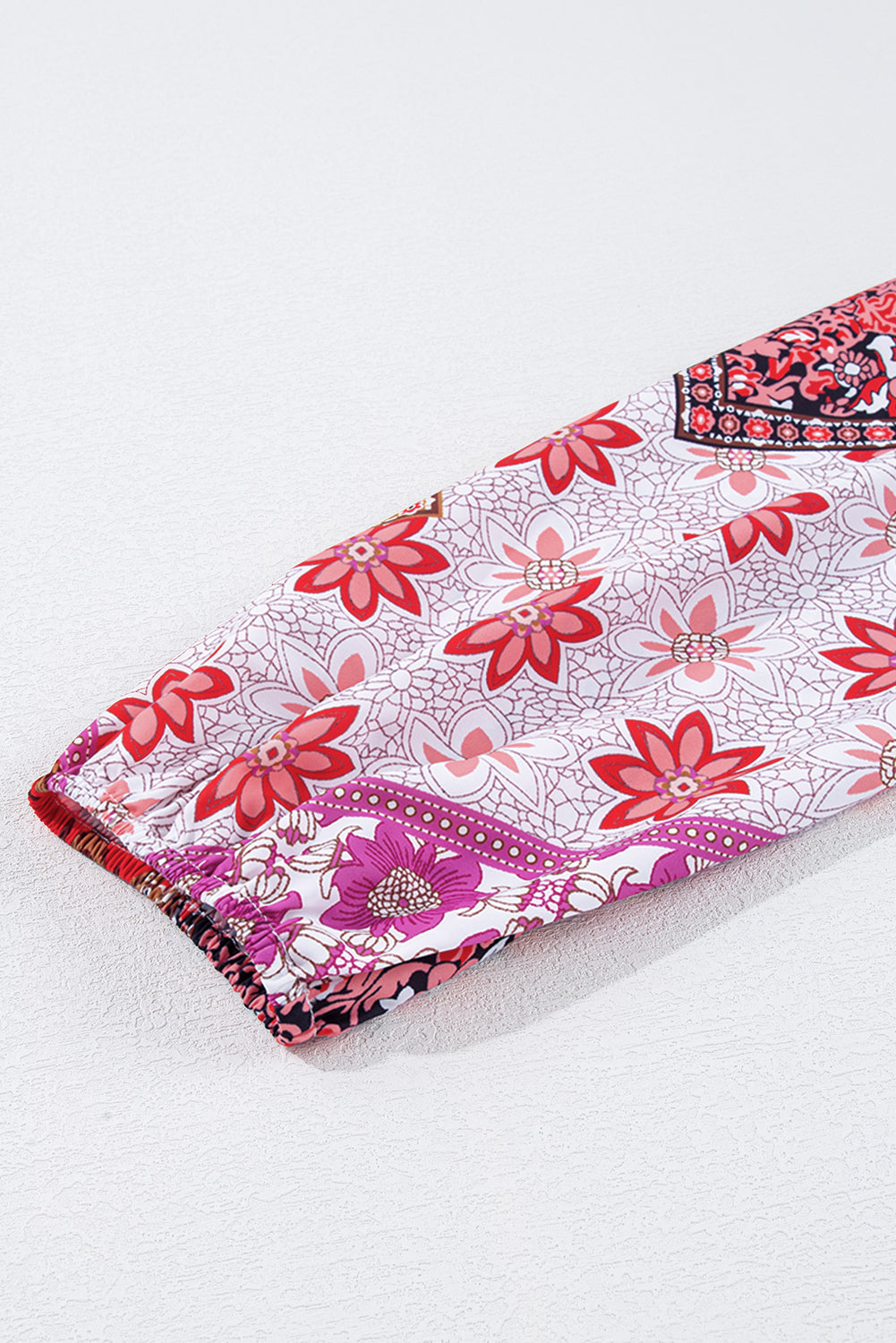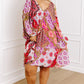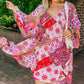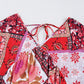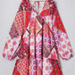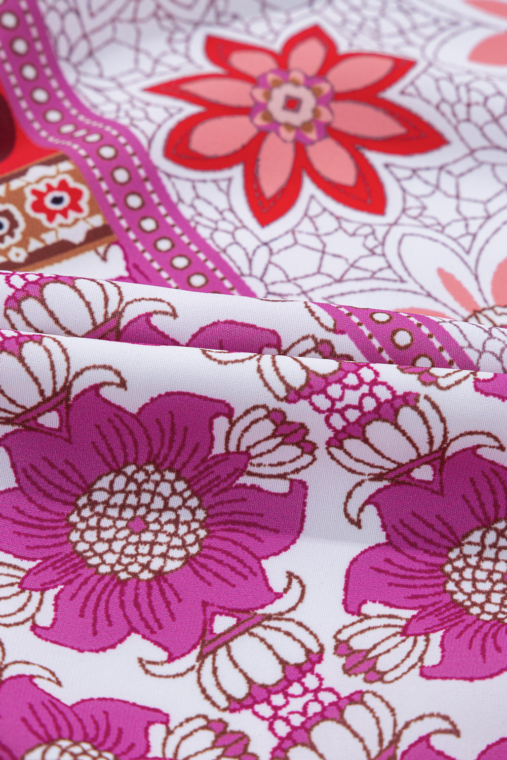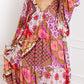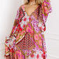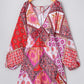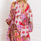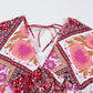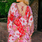 Rose Mixed Floral Long Sleeve V Neck Lace-up Hollowed Back Plus Size Dress