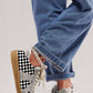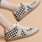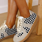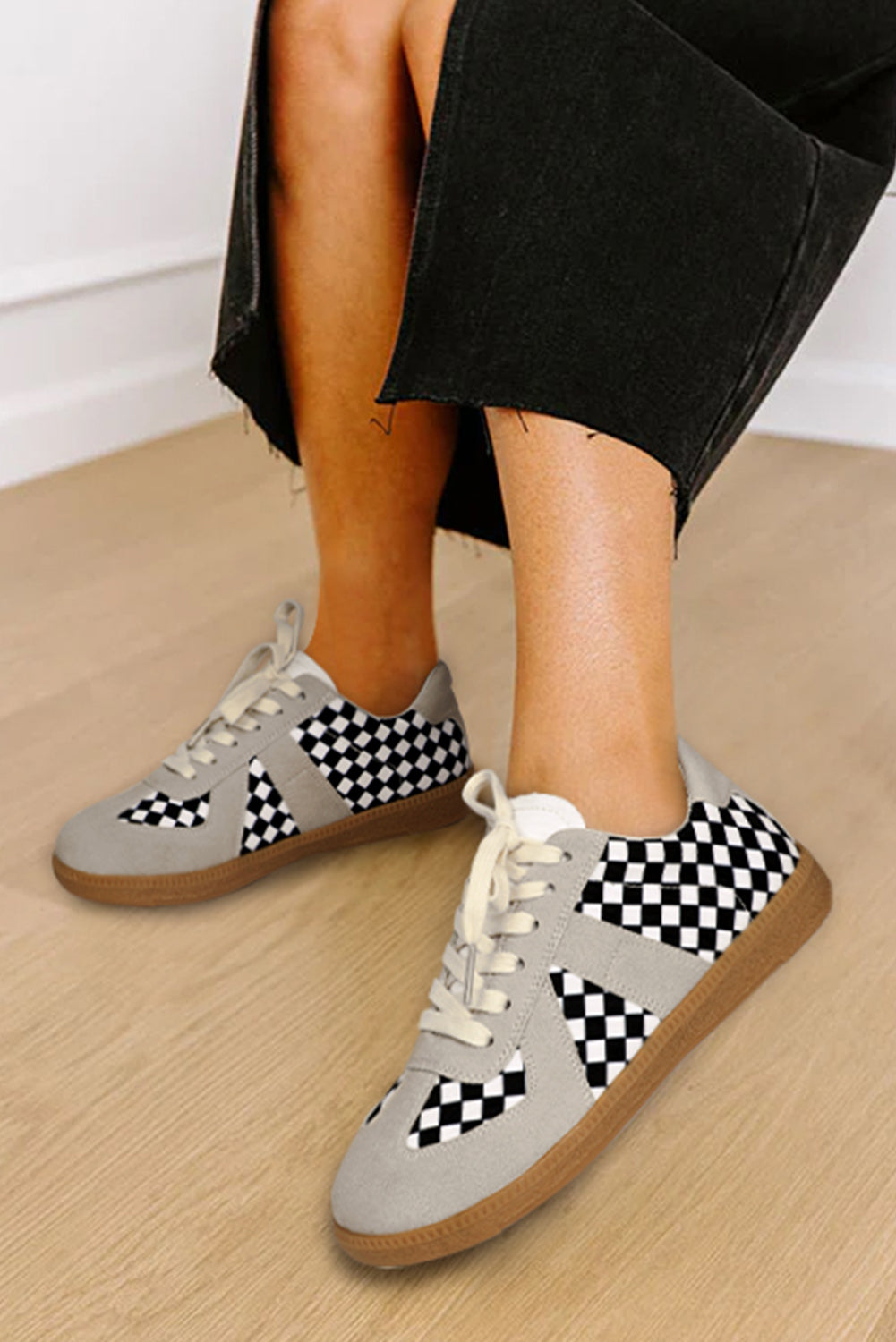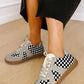 Black Checkerboard Patchwork Lace-up Flat Leatherette Shoes