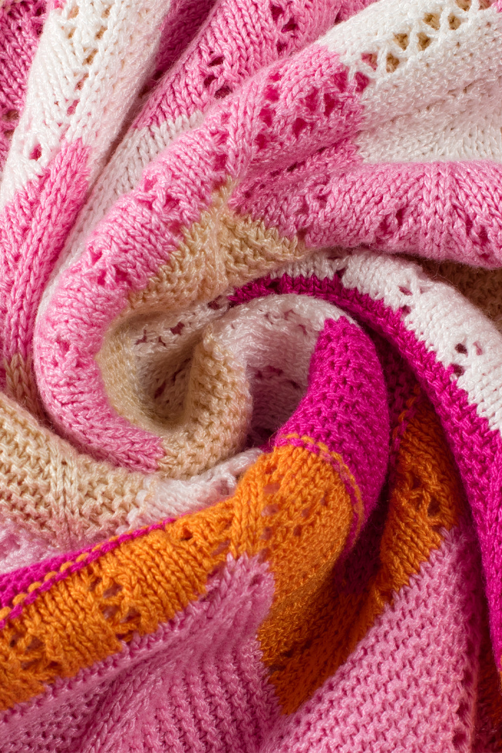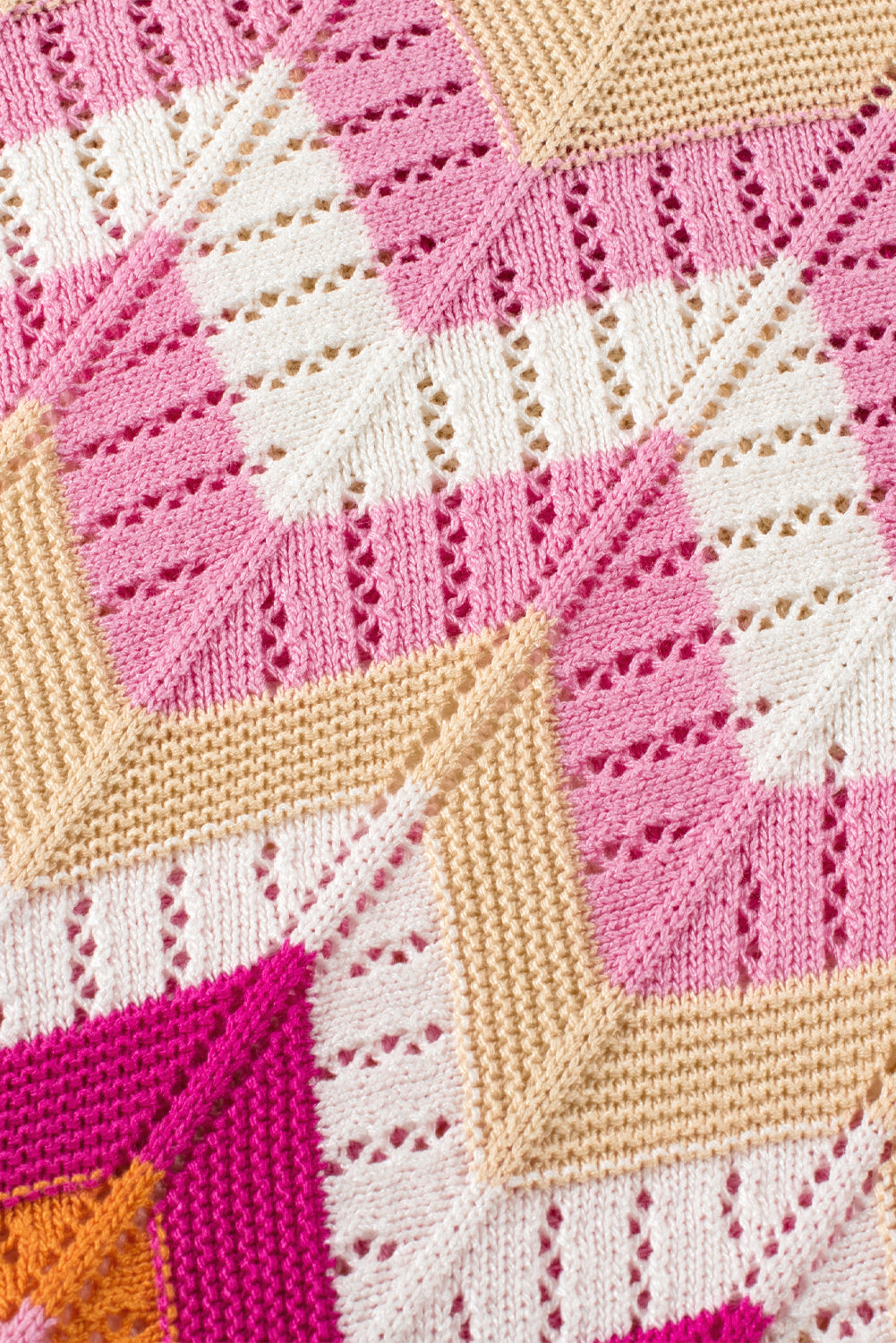 Pink Stripe Chevron Pointelle Knit V Neck Short Sleeve Sweater