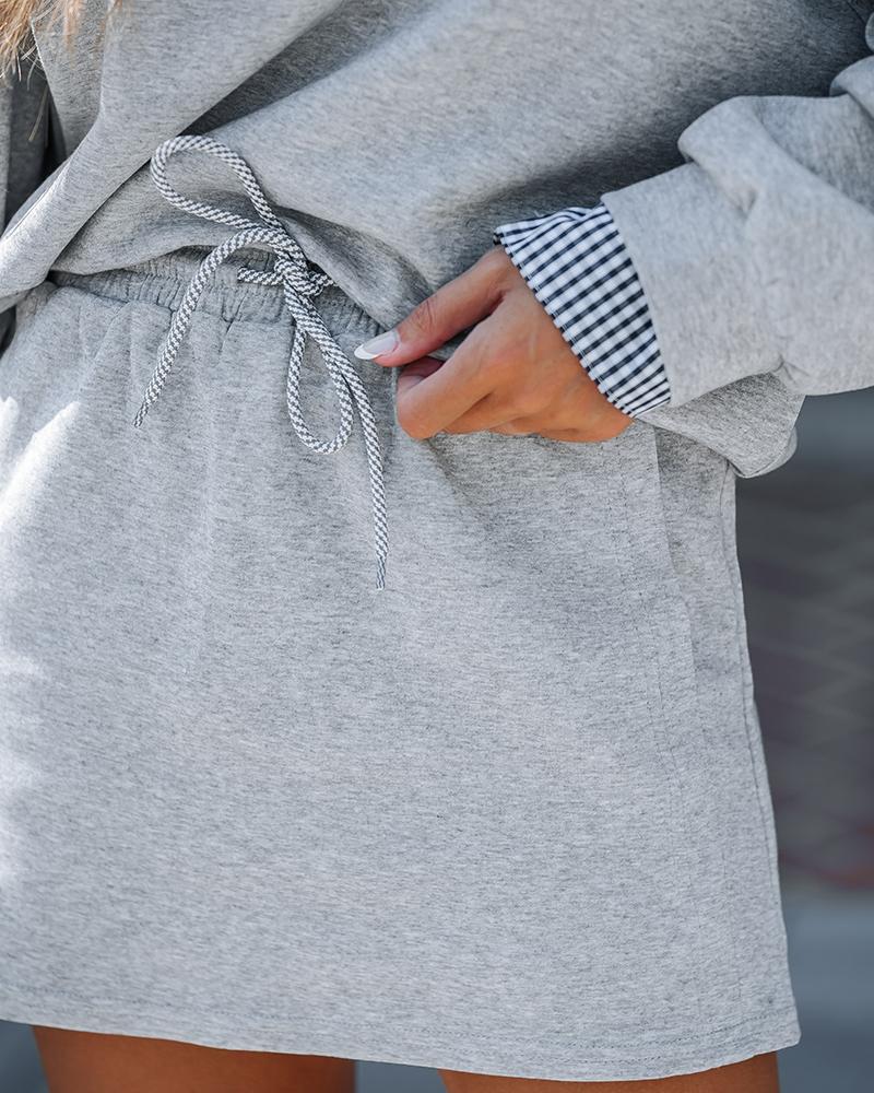 2PCS Plaid Print Patchwork Round Neck Sweatshirt & Drawstring Waist Skirt Set