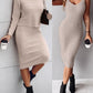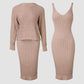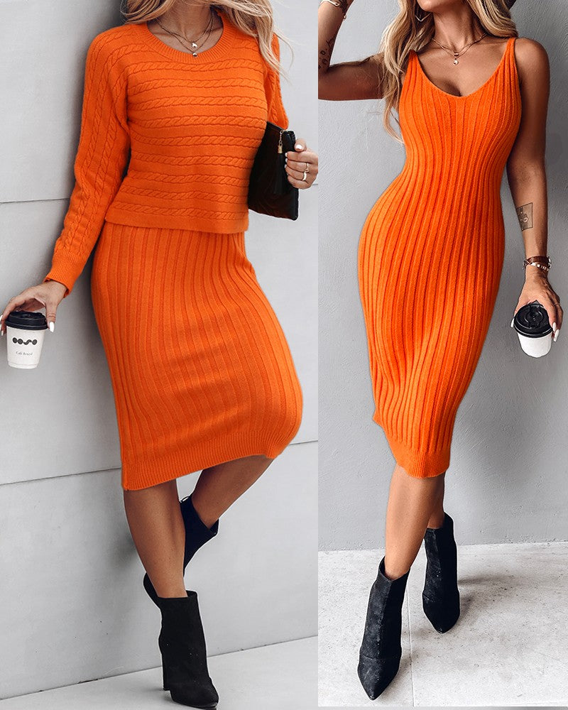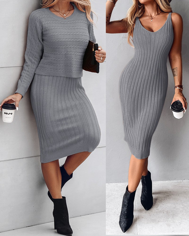 2PCS/Set Cable Knit Long Sleeve Sweater Top & Slip Midi Dress