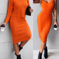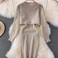 2PCS/Set Cable Knit Long Sleeve Sweater Top & Slip Midi Dress
