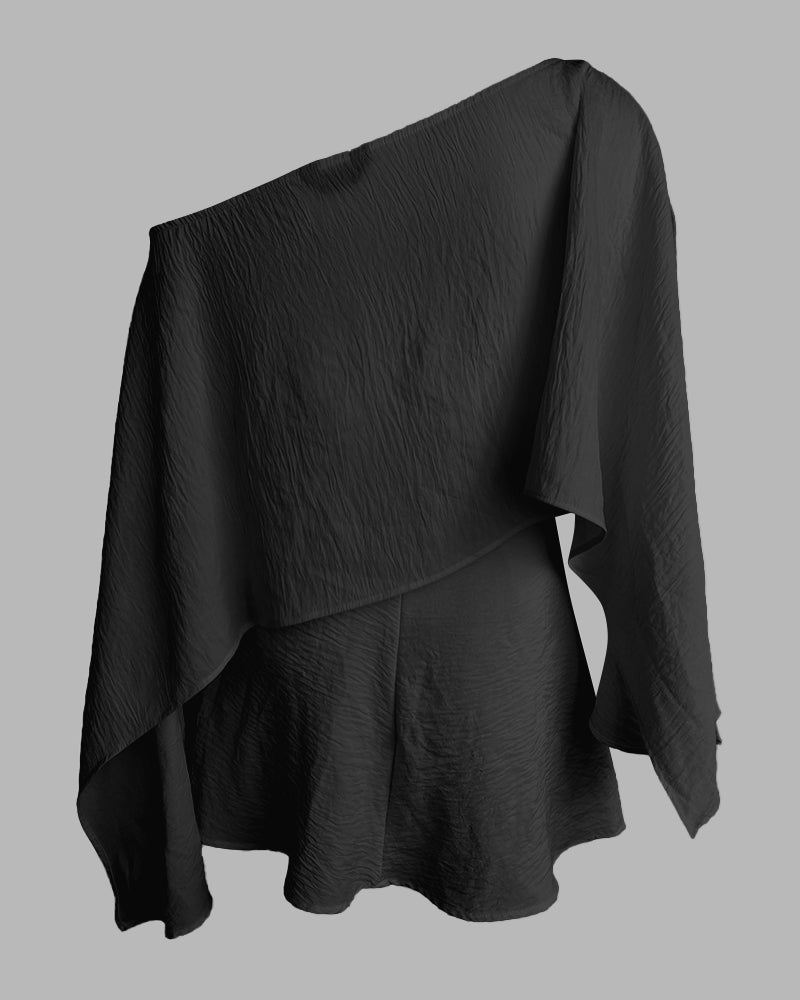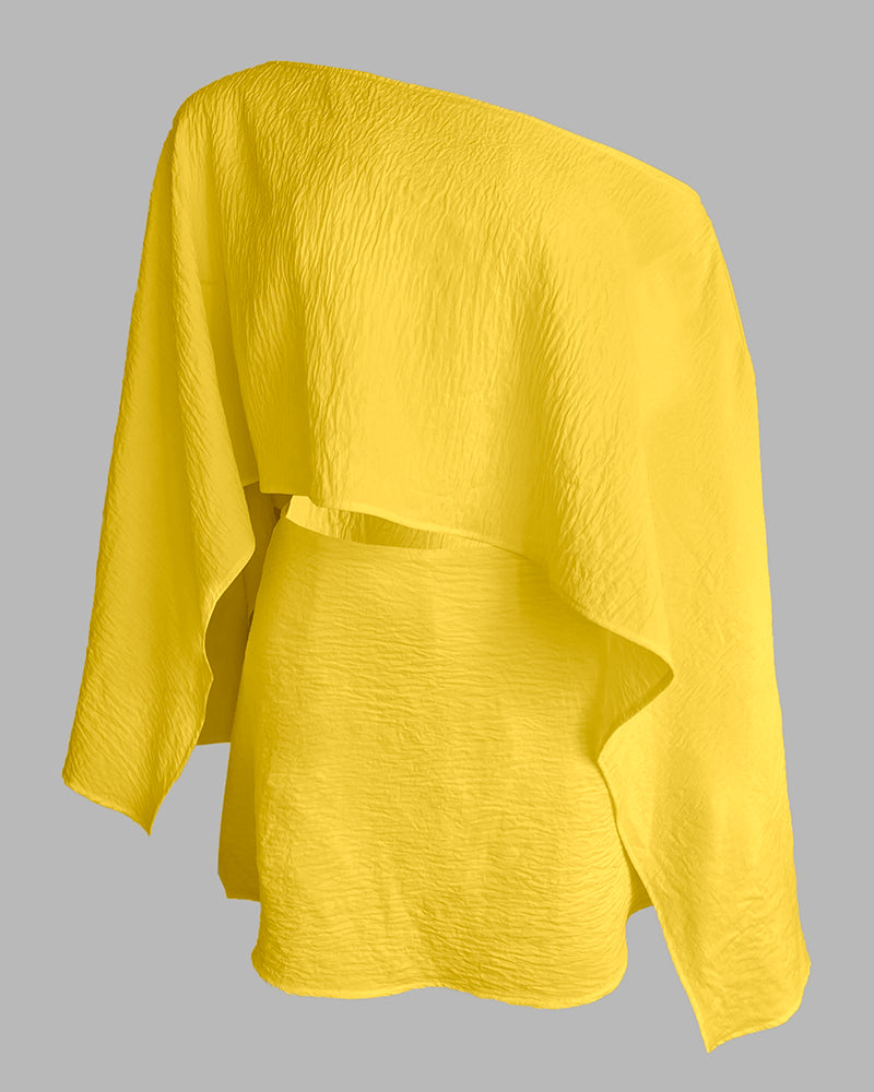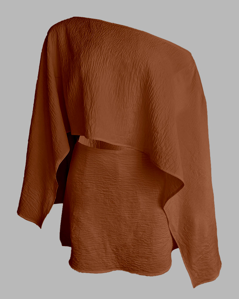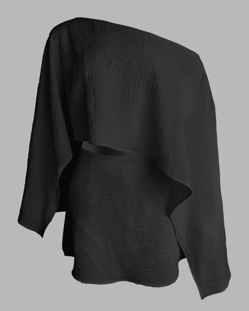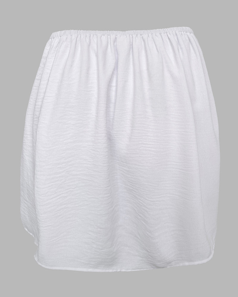 3 Pieces Outfit Solid Off Shoulder Split Sleeve Convertible Crop Top and Casual Elastic Waist Skorts Set With Bandeau(Without Belt)