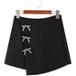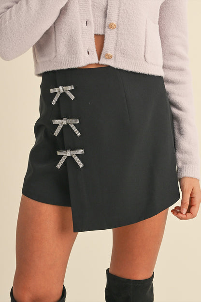 Black Rhinestone Bow Wrap High Waist Mini Skirt