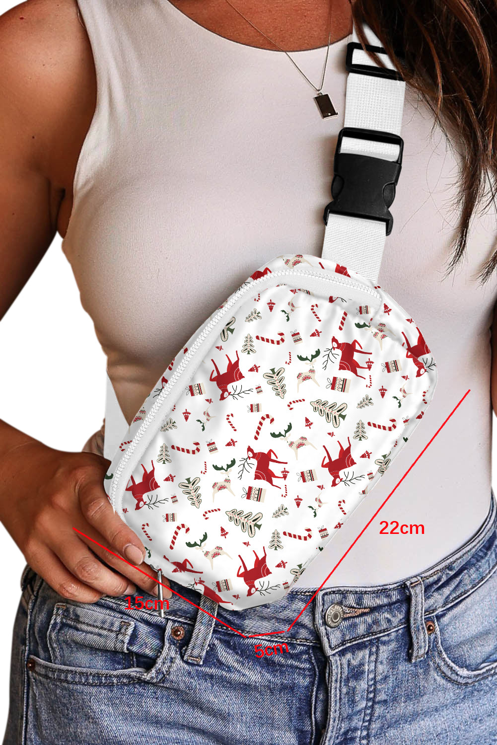 White Christmas Pattern Print Buckle Wide Strap Crossbody Bag