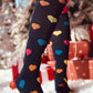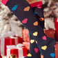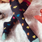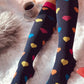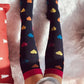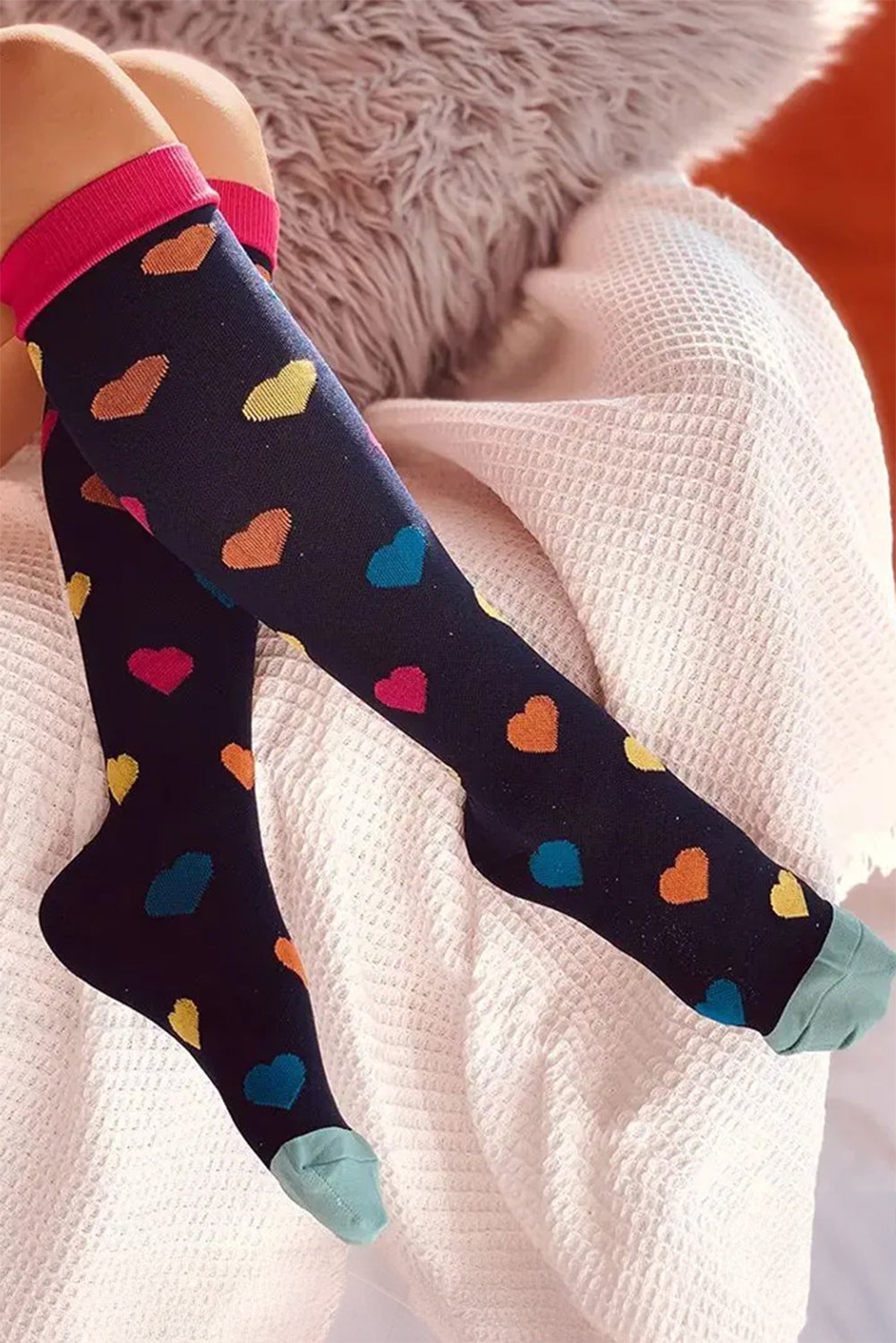 Navy Blue Valentine Heart Pattern Contrast Trim Mid-length Socks