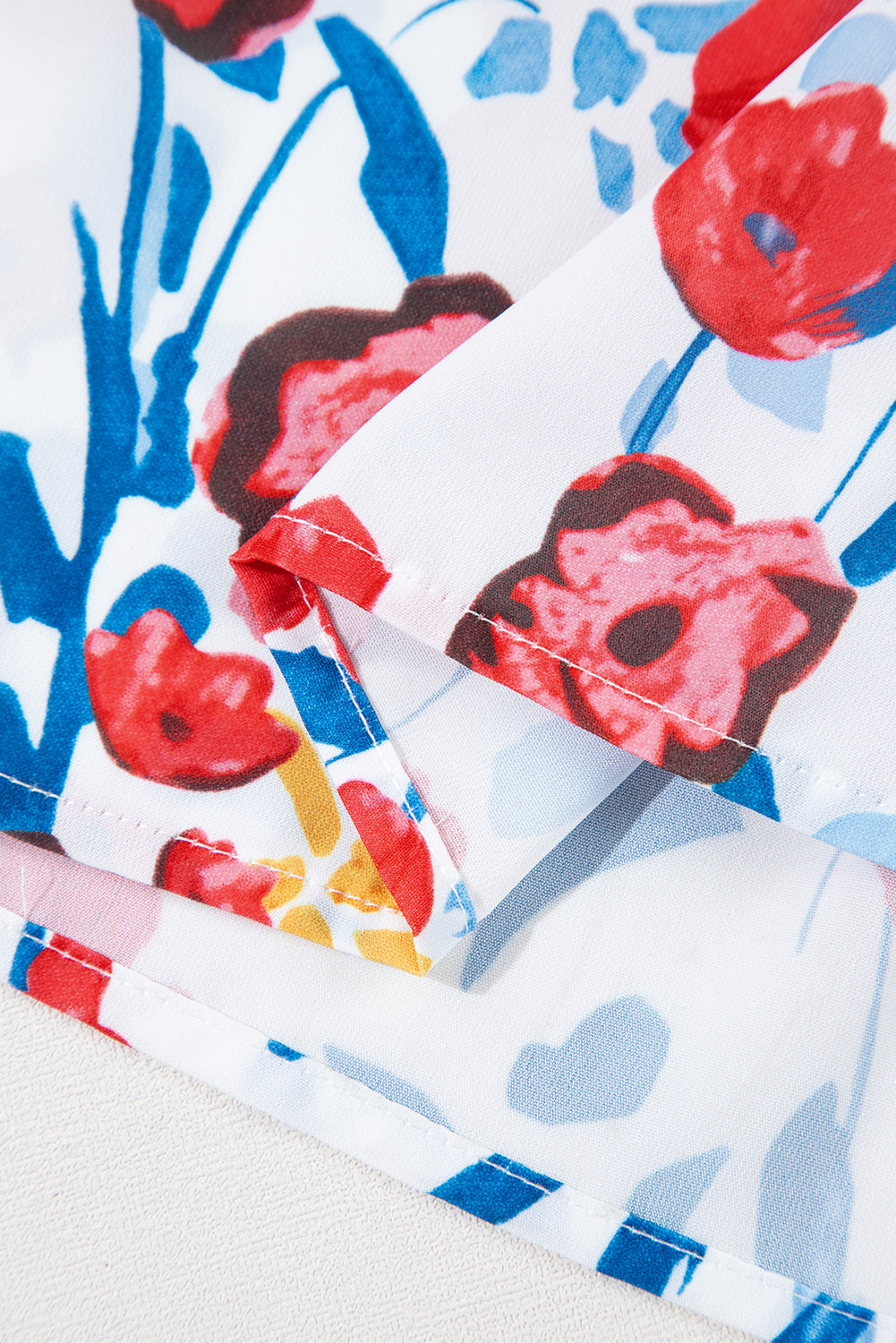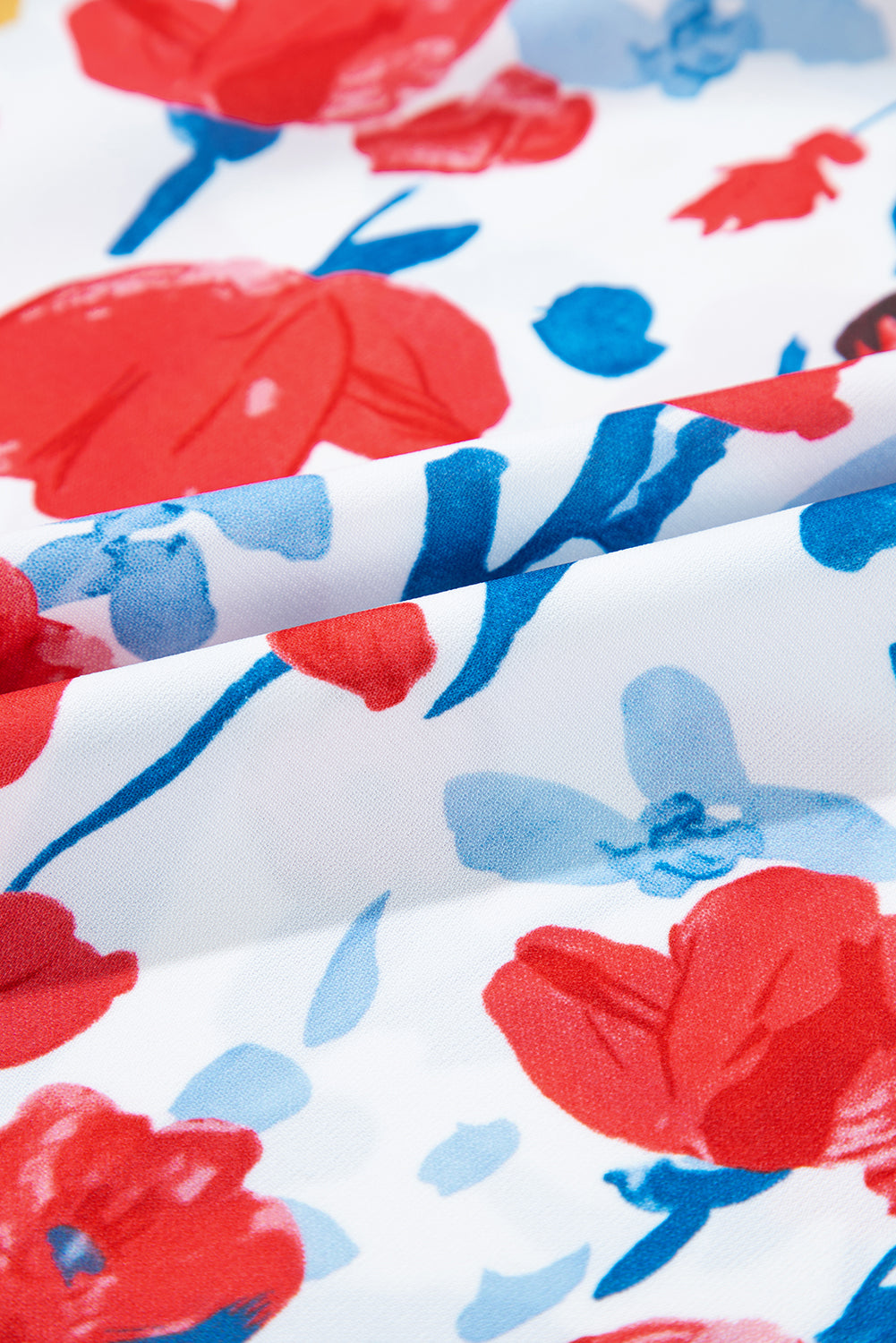 Red Flowers Pintuck Detail V-Neck Ruffled Sleeve Top